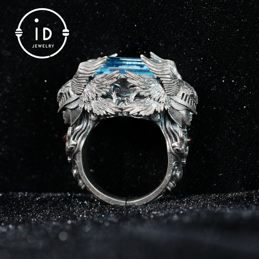Valkyrie Ring | Blue Topa Stone winged Helmet Design | Nordic Mythical Warrior Goddess Style Handmade Ring