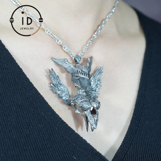 Valkyrie Pendant in 925 Sterling Silver with Ruby & Amethyst | Gothic Fantasy Totem Necklace | Handmade Mythology Jewelry for Collectors