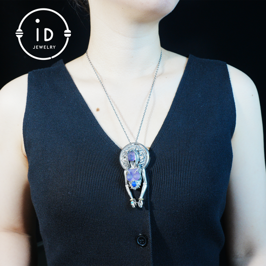 Handmade 925 Sterling Silver Cyber-Gothic Goddess Pendant Necklace | Dark Fantasy Talisman | Feminist Power Symbol | Unique Halloween Gift
