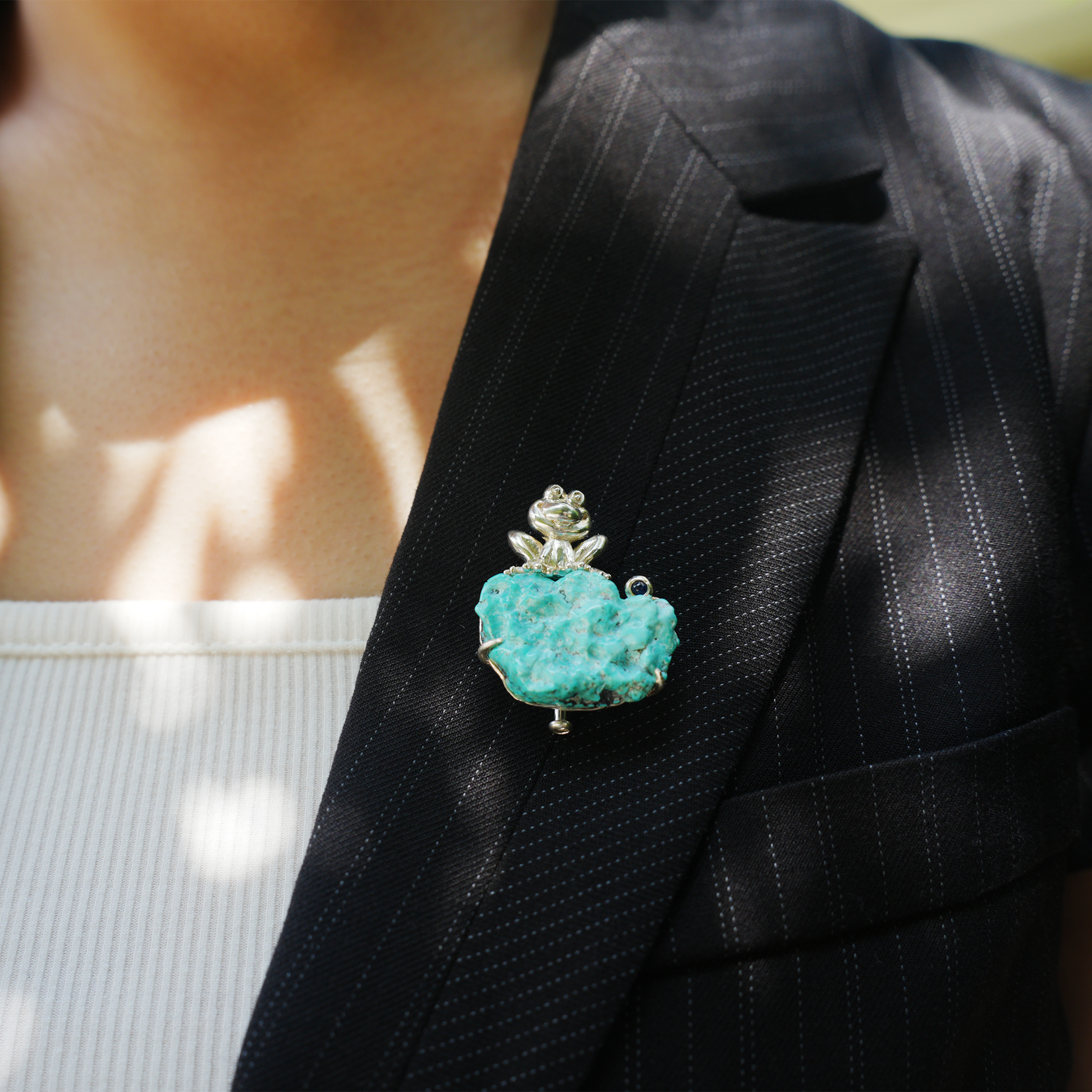 925 Silver Frog Pendant Brooch | Raw Turquoise Lucky Jewelry | Cute Gift for Her