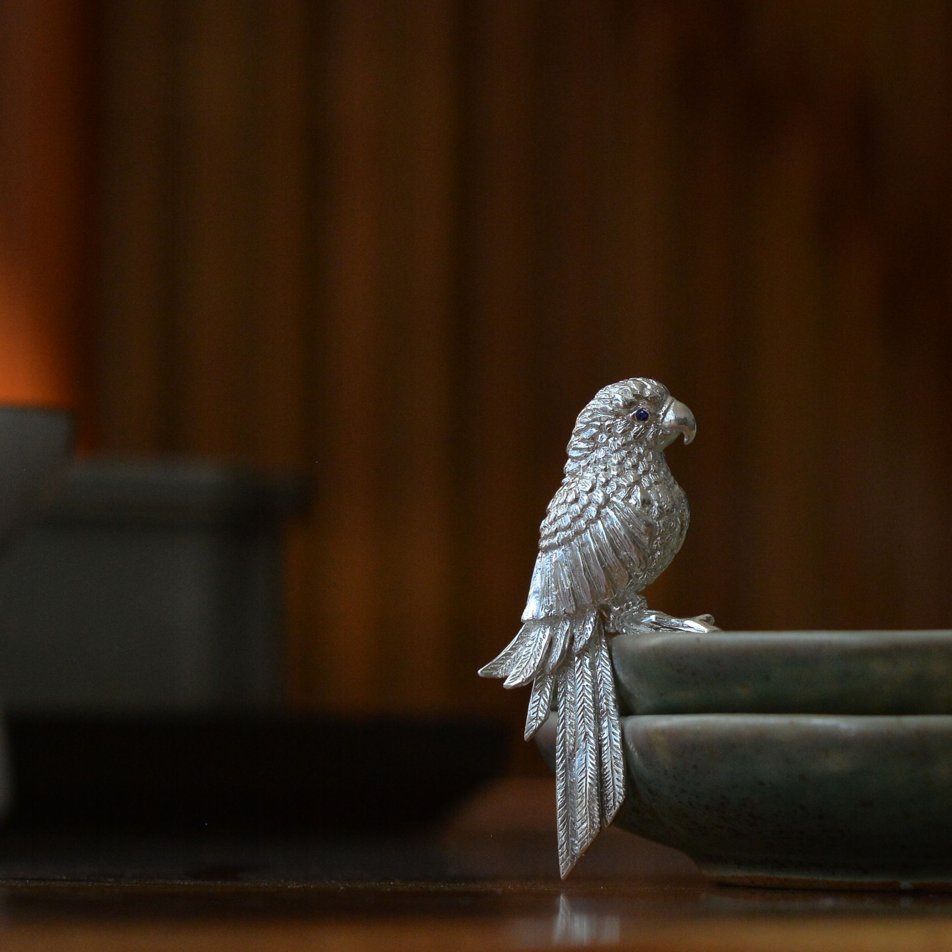 Sculpted from 925 sterling silver, each feather is meticulously hand-carved, and its sapphire-set eyes radiate calm wisdom.