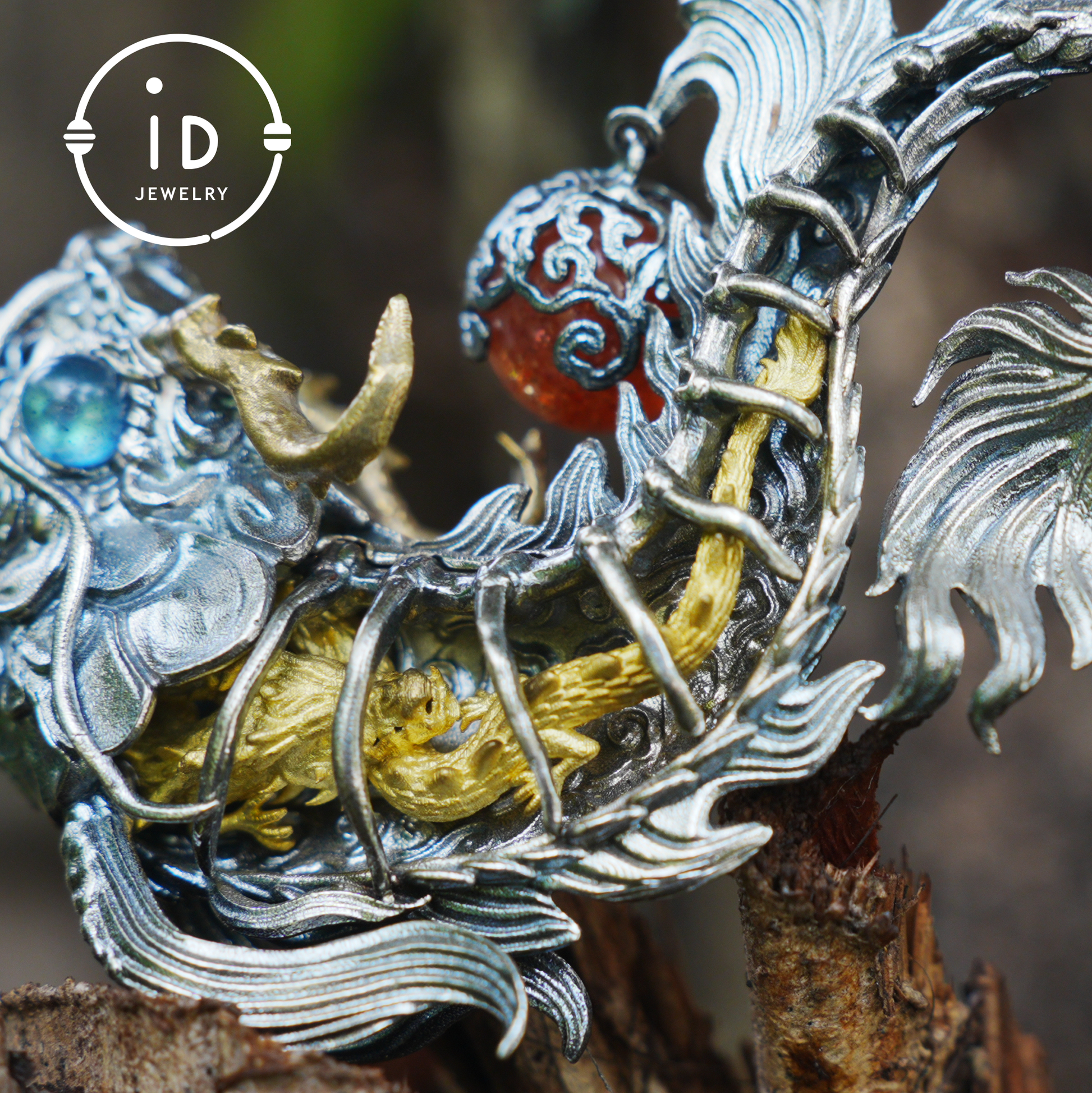 The inspiration came from the idea of an encounter between dragon and fish, an image of transformation and power arising from contrasts.