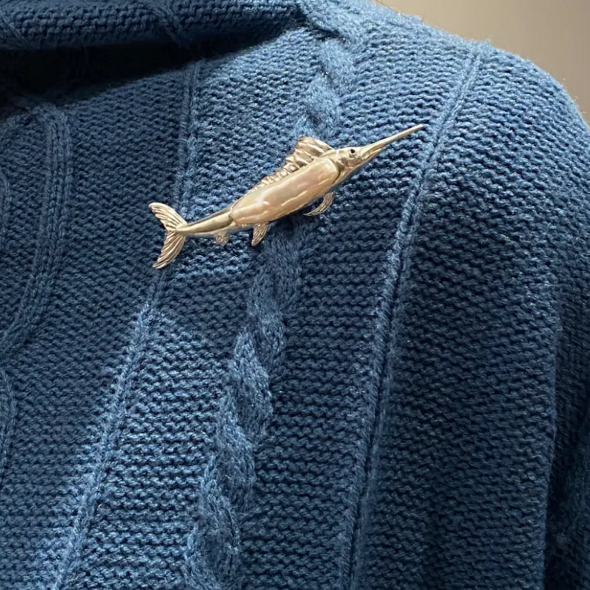 925 Silver Sailfish Brooch Pendant | Pearl & Sapphire Ocean Jewelry | Handmade Sea Totem Gift for Sailors & Dreamers