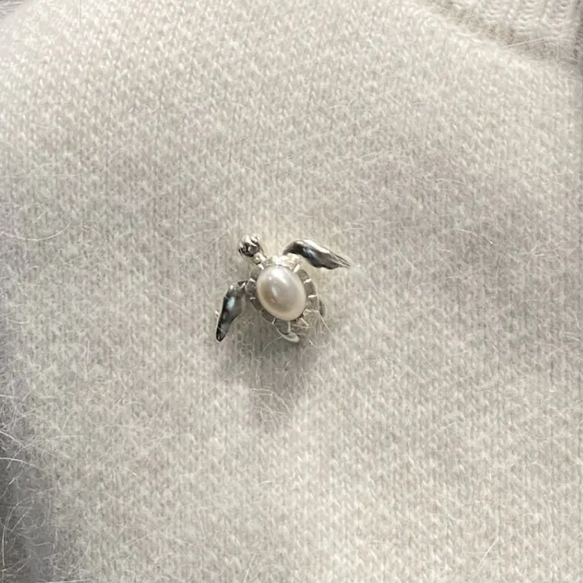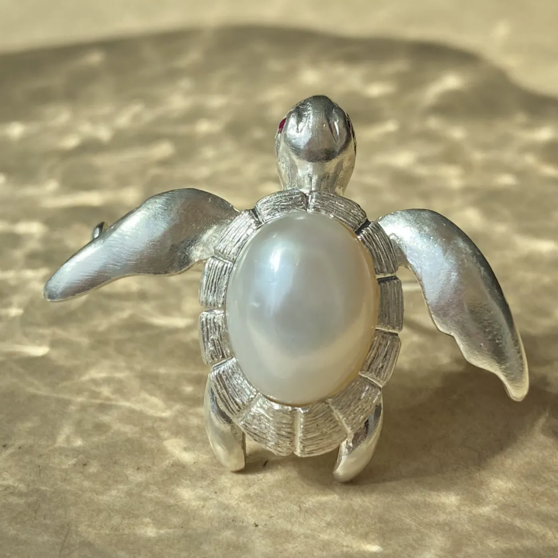 925 Silver Turtle Brooch Pendant | Pearl & Ruby Handmade Jewelry | Ocean Totem Gift for Creators & Dreamers