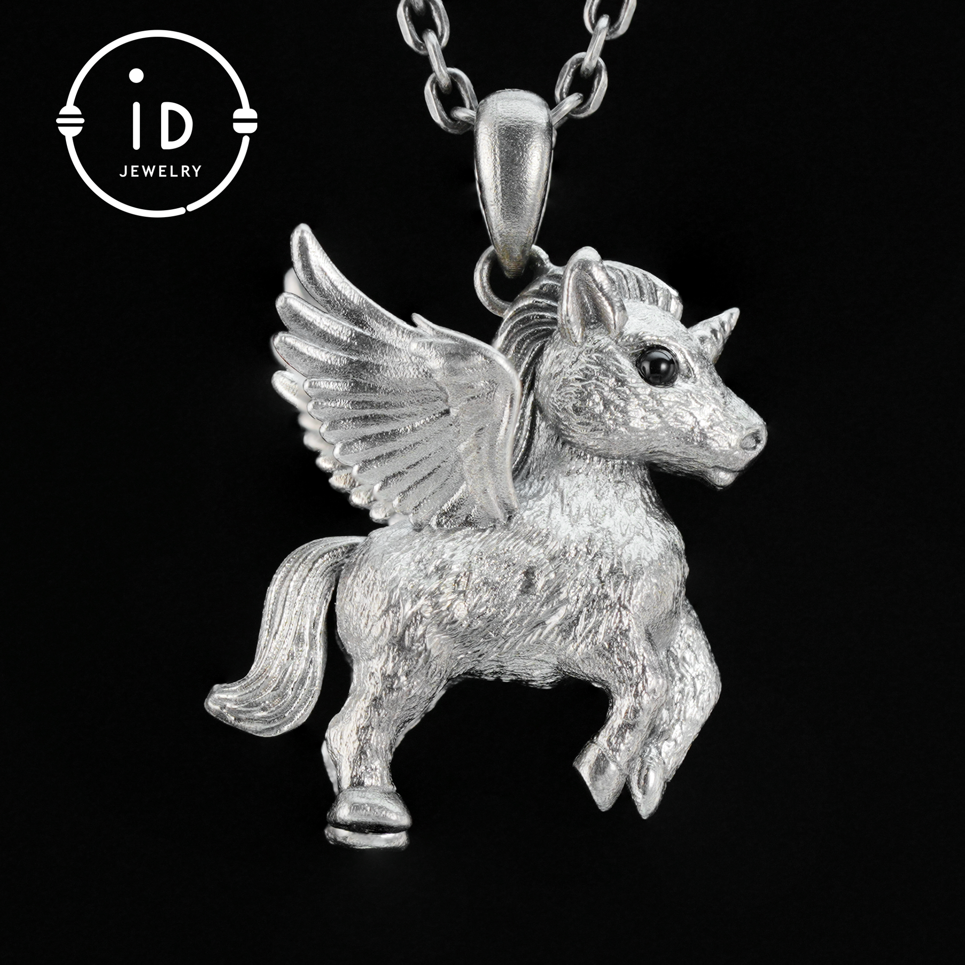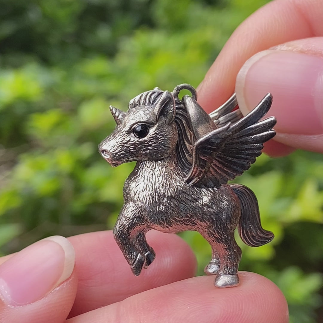 925 Silver Unicorn Pendant with Onyx Eyes, Pegasus Gothic Necklace Handmade Fantasy Jewelry, Gift for Women Birthday or Christmas
