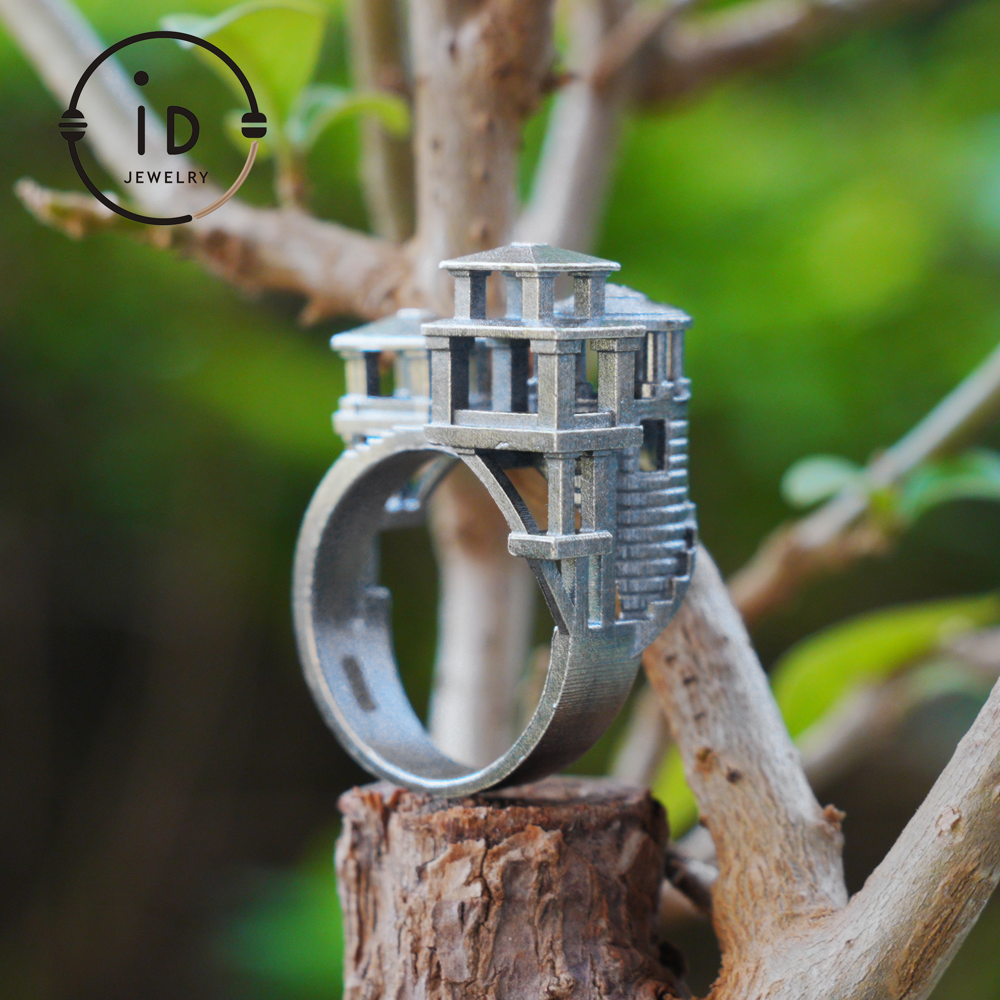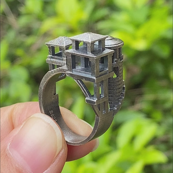 Architectural Silver Ring without Gemstone · Brutalist Statement Ring for Him or Her · Unisex Modern 925 Silver Art Jewelry
