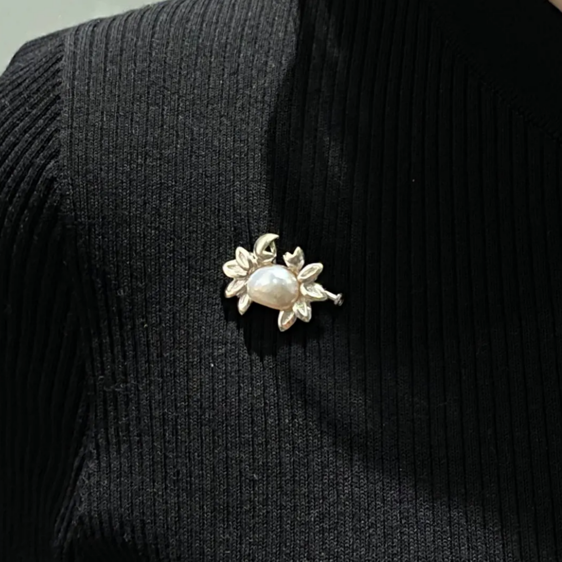 This Cancer Brooch Pendant is handcrafted in 925 sterling silver, designed as a crab embracing a natural freshwater pearl — a symbol of love, empathy, and emotional protection.