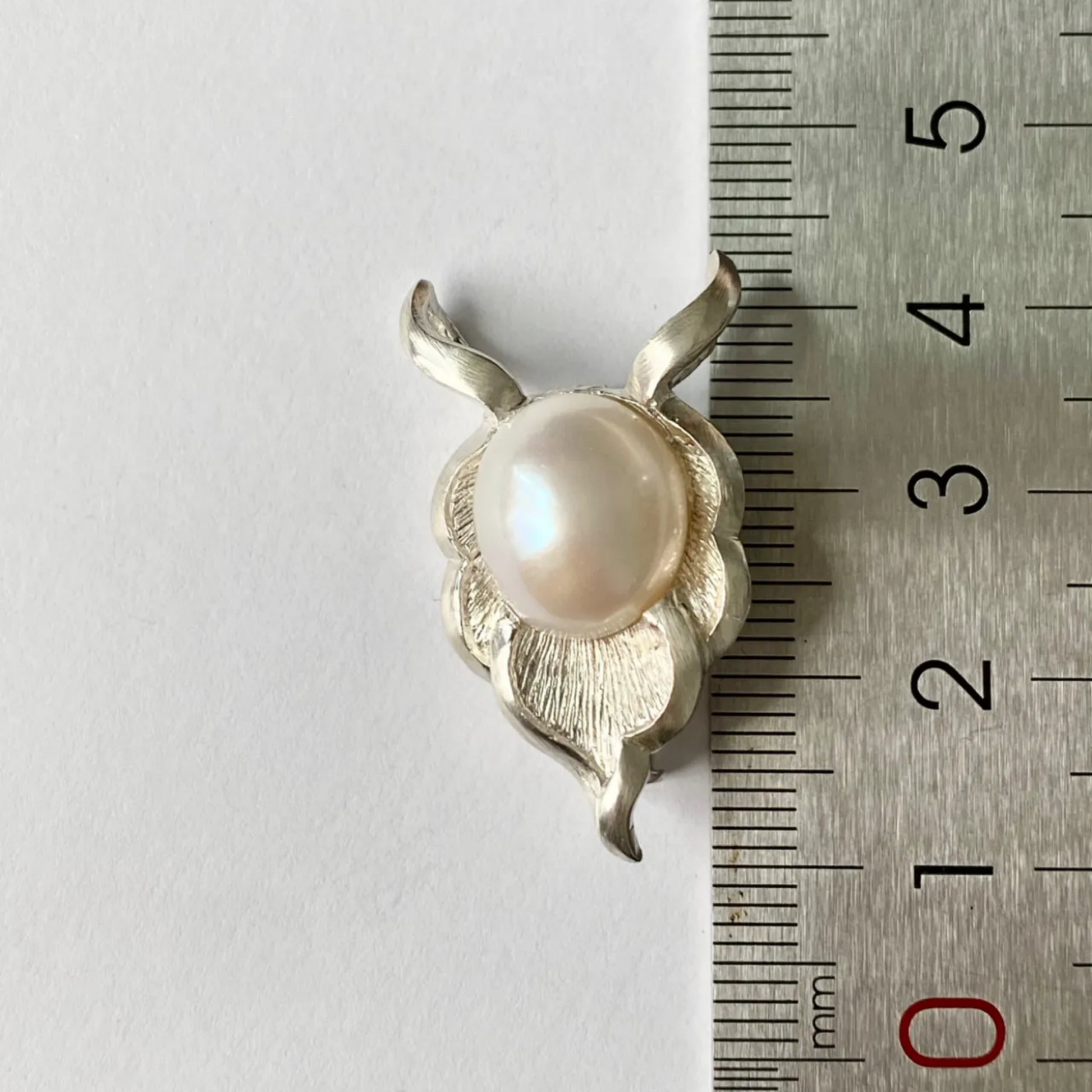 This Capricorn Brooch Pendant is a handcrafted piece made from 925 sterling silver, featuring elegant horn motifs surrounding a natural freshwater pearl.