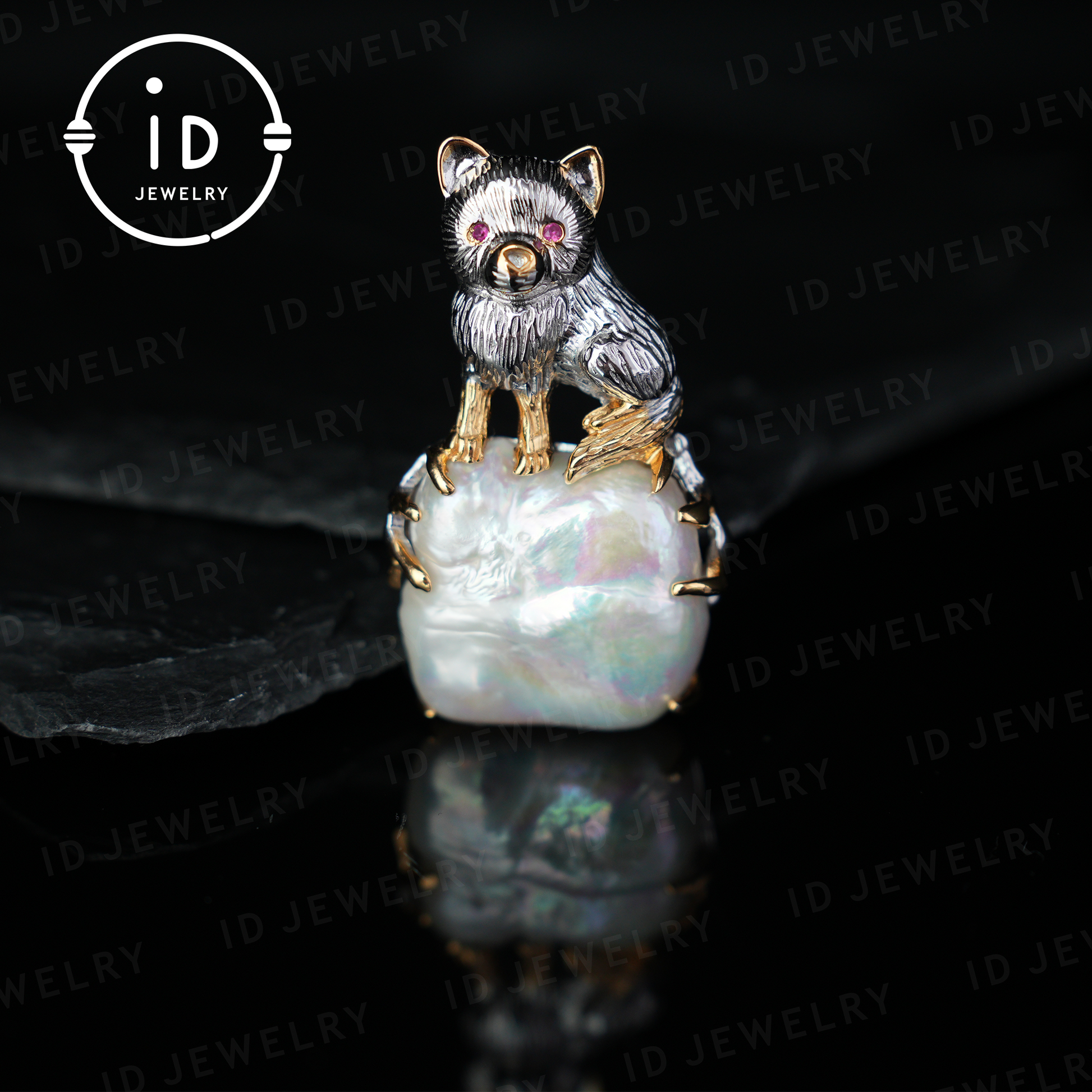 This enchanting pendant shows a cute little dog lovingly guarding a shimmering baroque pearl. Symbolizing loyalty and protection, this piece of jewelry is perfect as a gift for animal lovers or as a personal talisman.