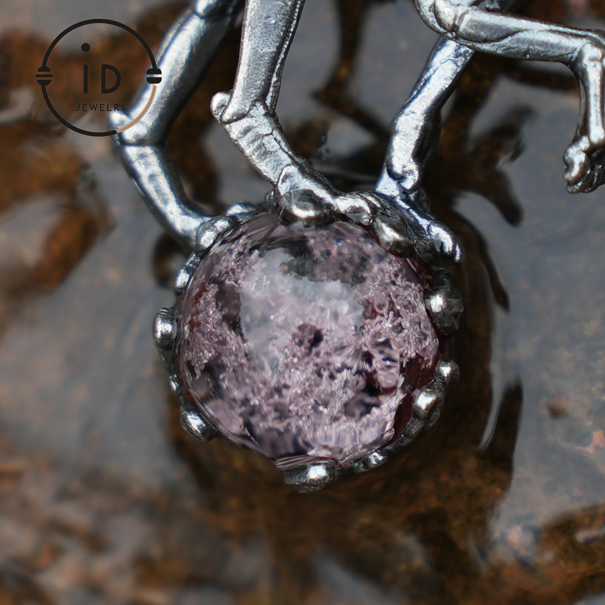 Discover the dark elegance and fantasy magic with our handmade dragon pendant crafted from 925 silver and featuring a mysterious phantom quartz.