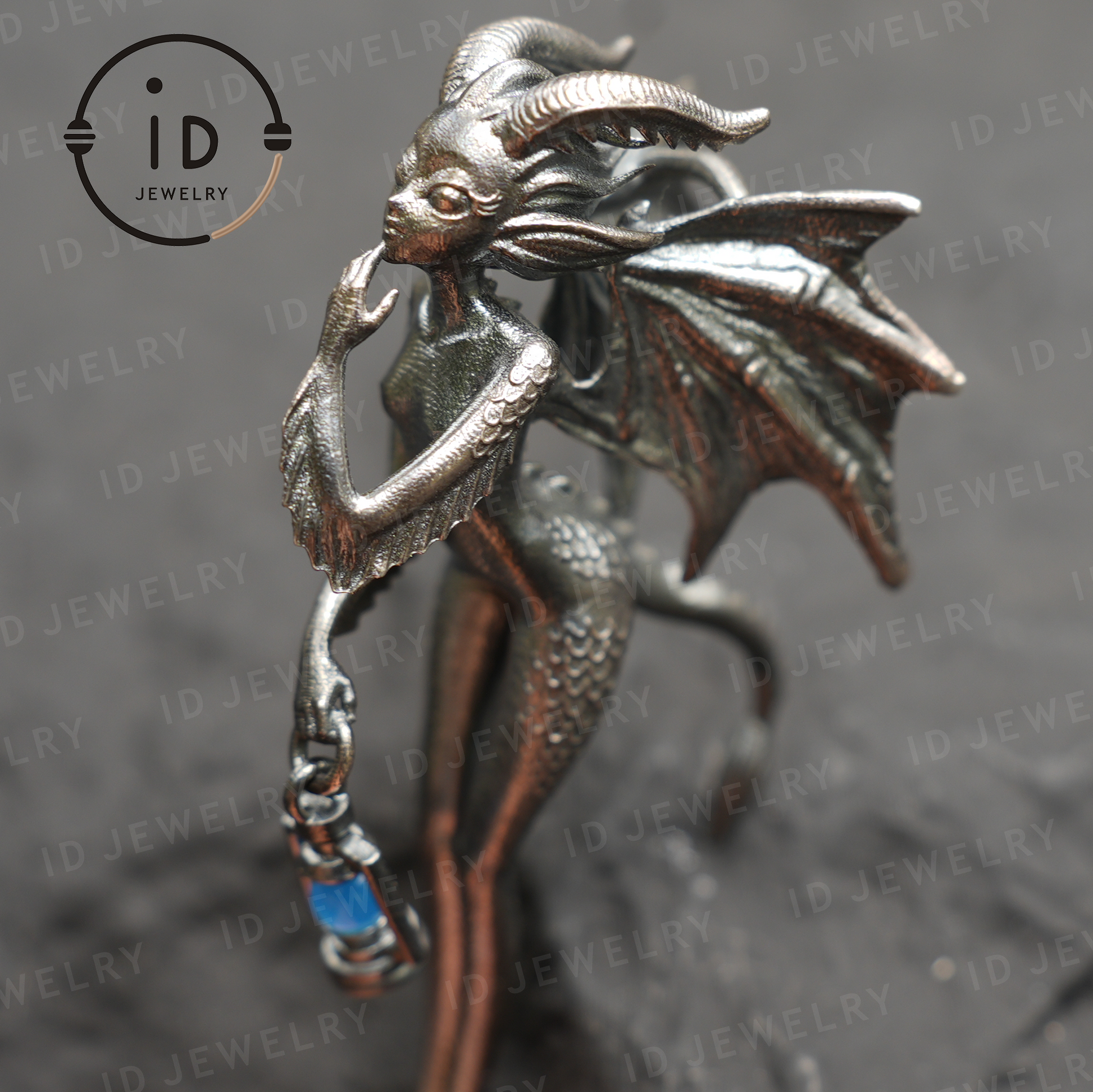 🧚♀️ This pendant transforms the fantasy dragon maiden into reality, blending finely crafted 925 silver with green chalcedony, granting the wearer courage to cross the night with a beauty that is both gentle and strong.