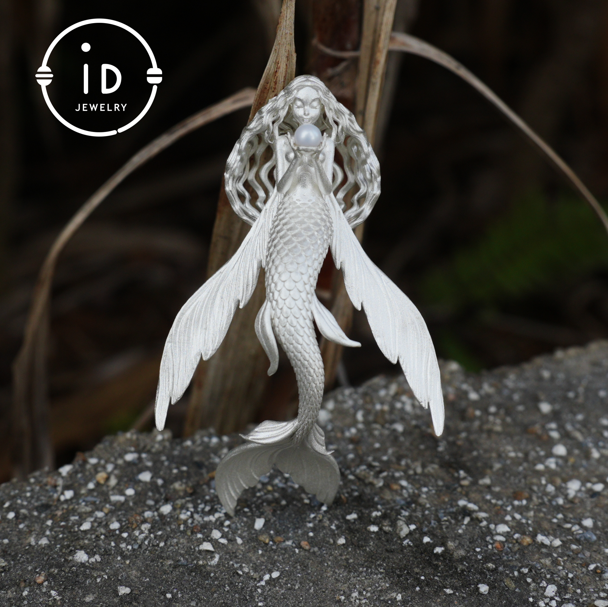 This pendant is inspired by that legend: she holds a freshwater pearl in both hands, symbolizing wishes and protection; delicate scales rise from tail to winged fins, representing breakthrough and freedom; her gaze is calm, as if waiting for someone who understands her secret.