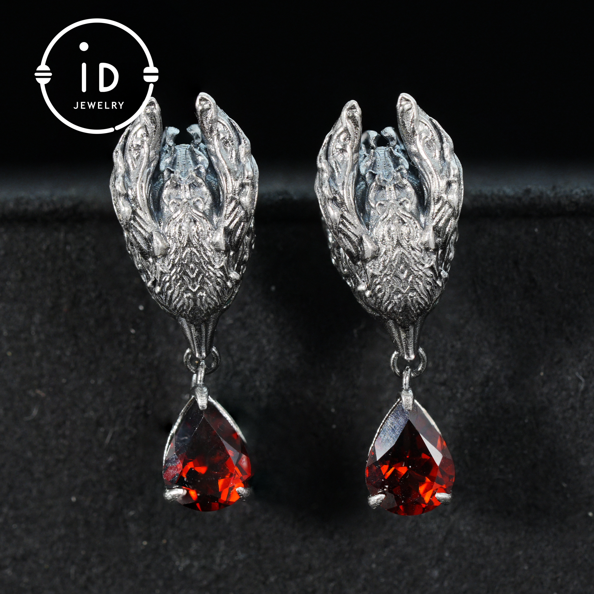 This artistically crafted jewelry set combines animal aesthetics with deep symbolic meaning. The fox ring and matching earrings are made of oxidized 925 sterling silver and red garnet, creating a captivating balance between clarity, strength, and mystical elegance.