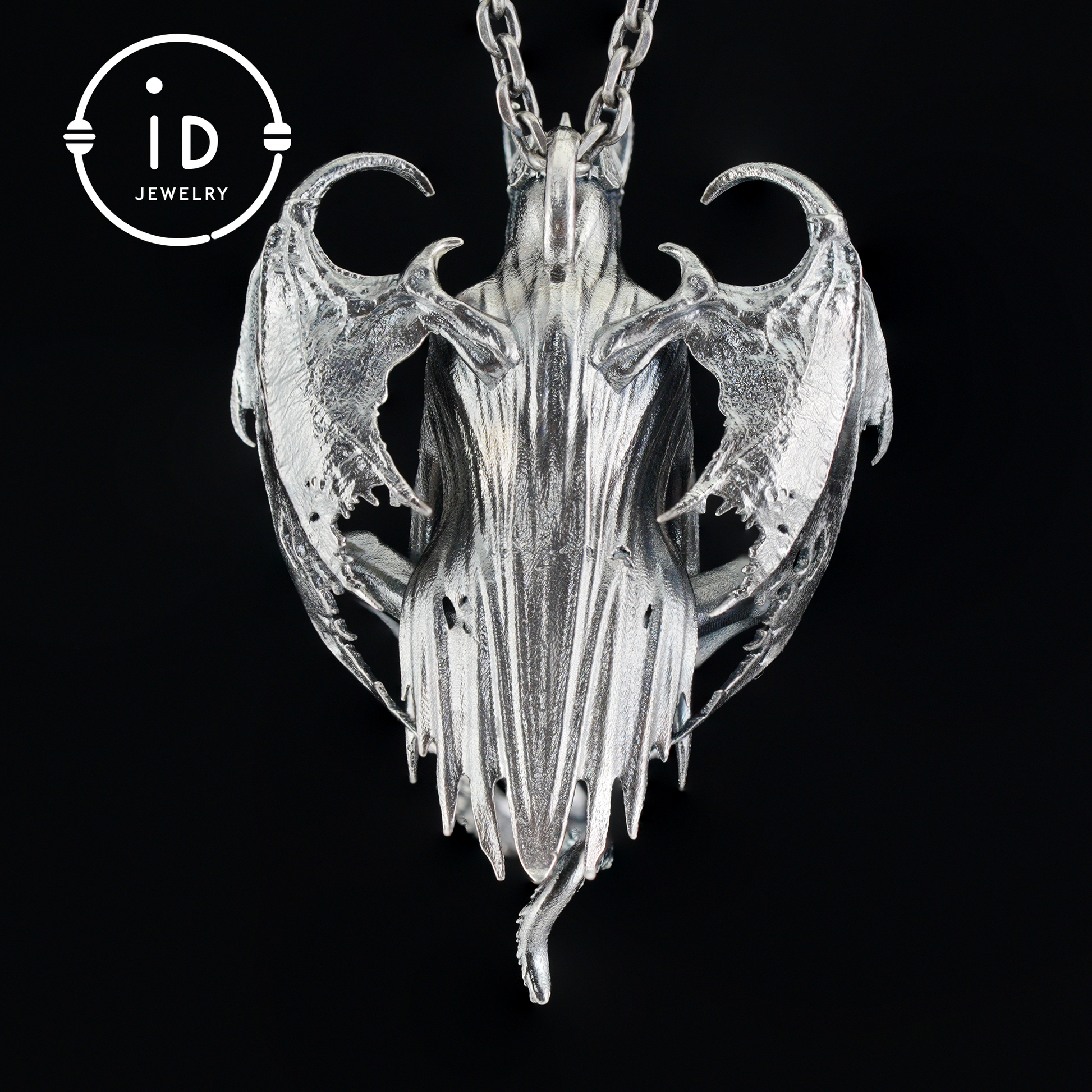 Gothic pendant with ghost crystal in oxidized 925 silver totem design gift for her statement necklace birthday