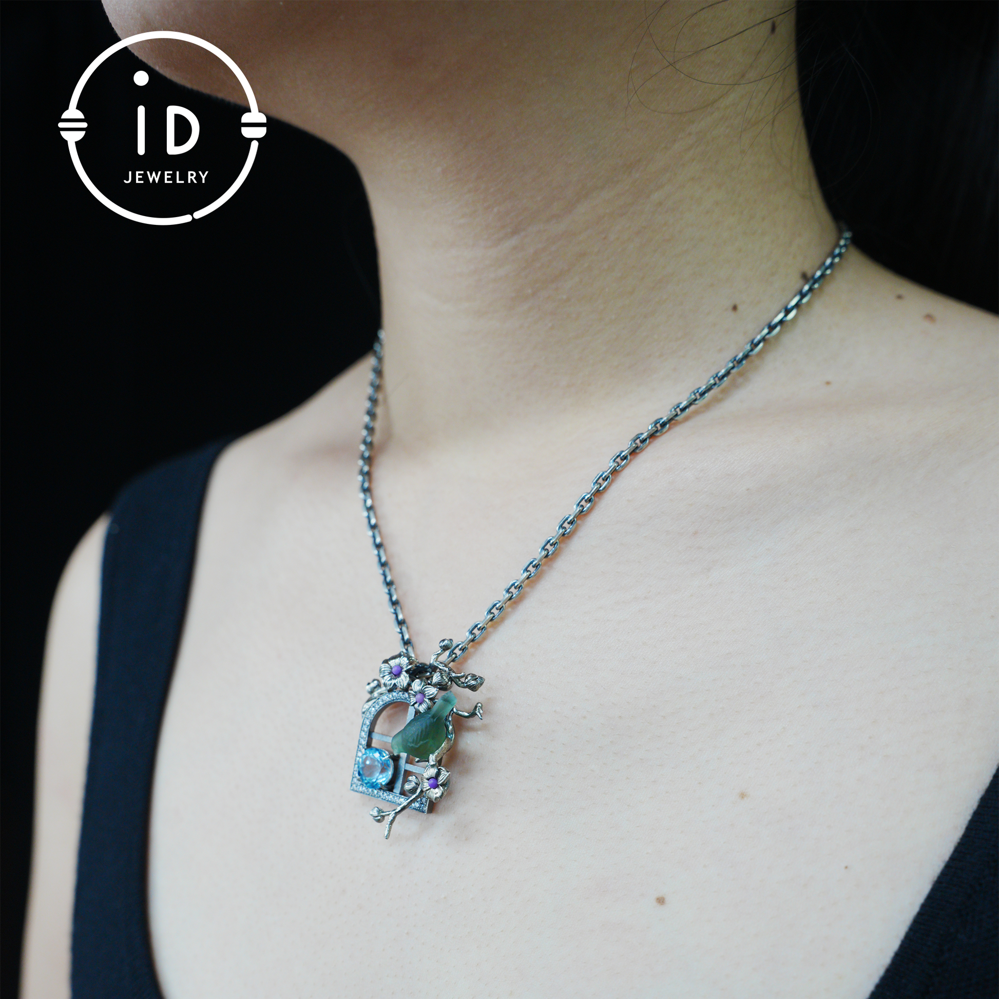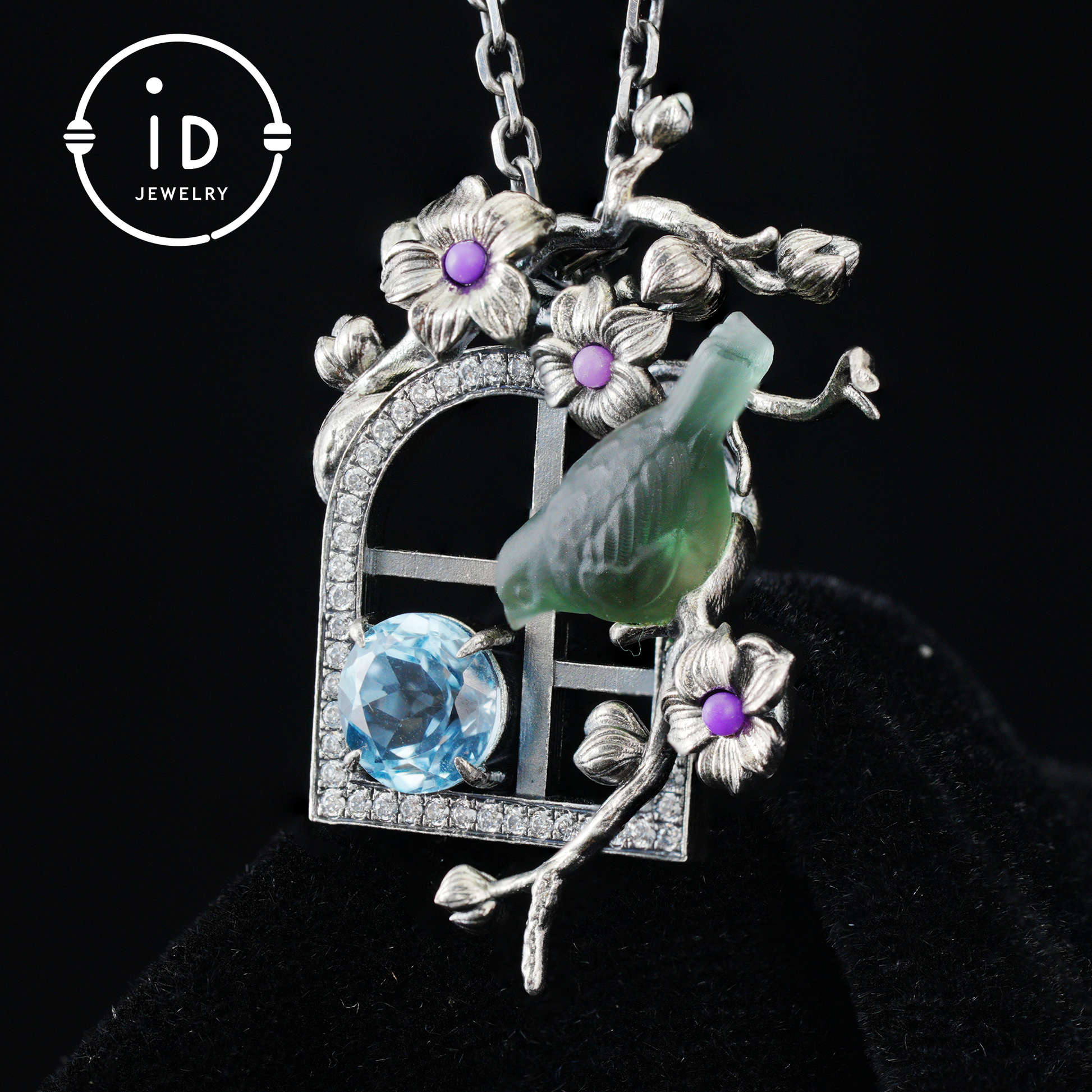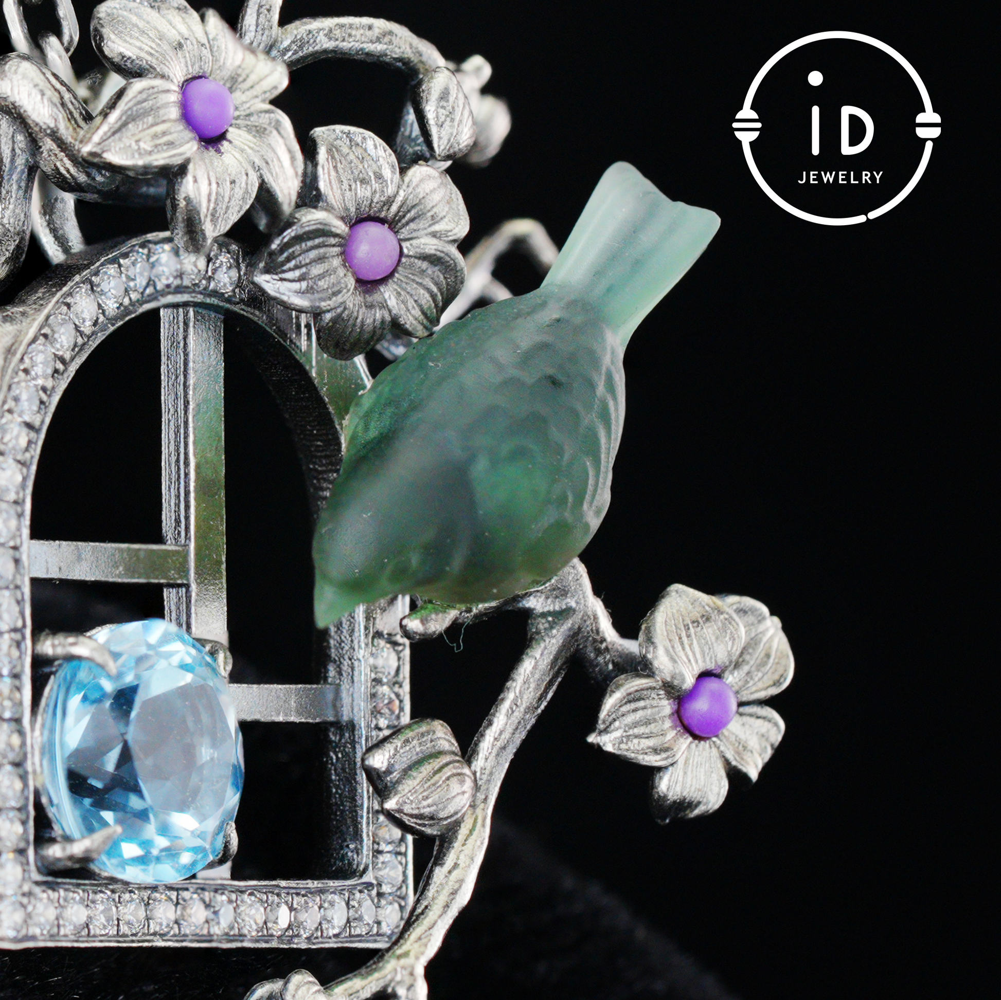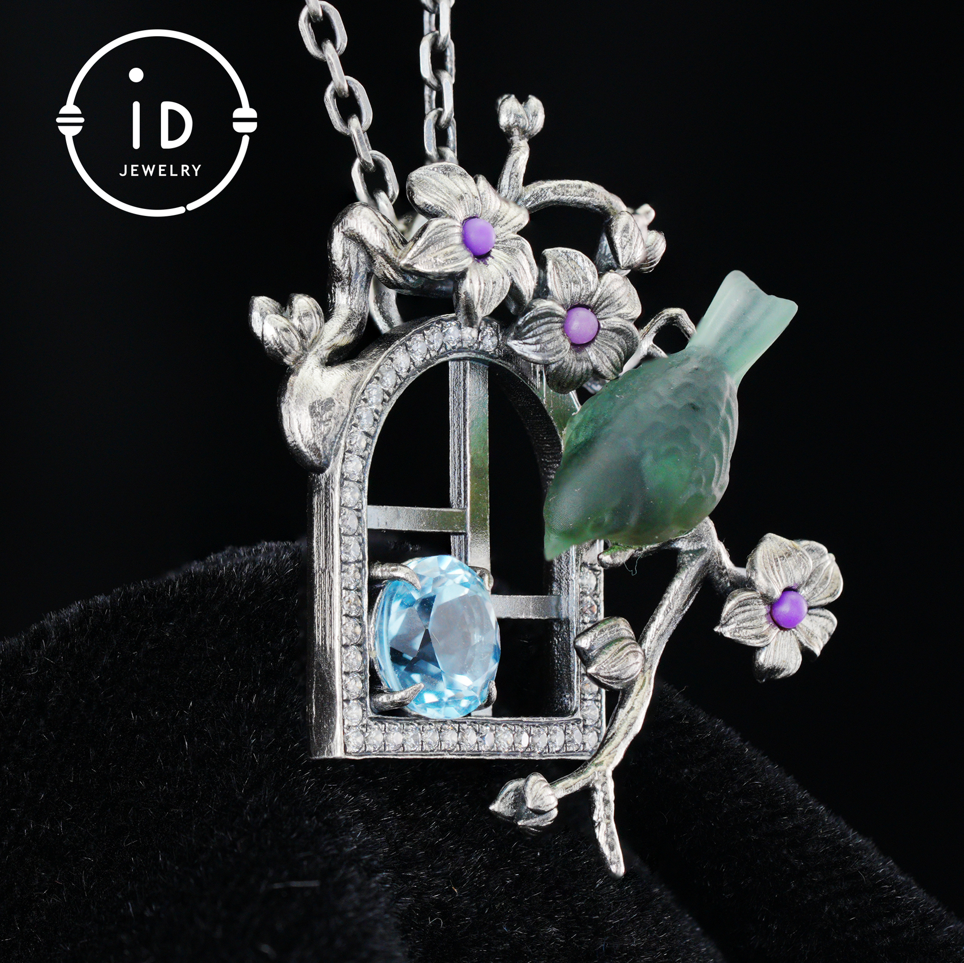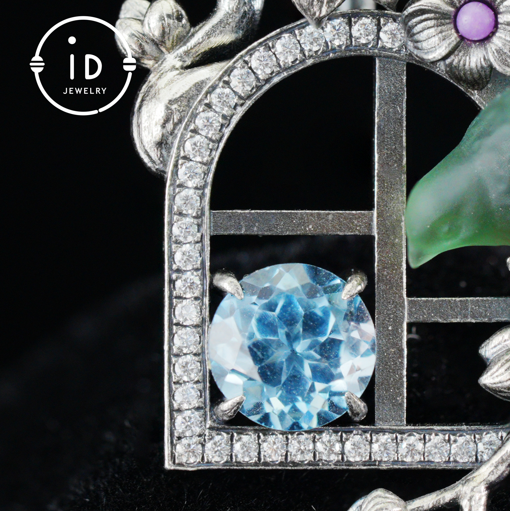 Material: 925 silver + natural topaz + green crystal + zircon + enamel