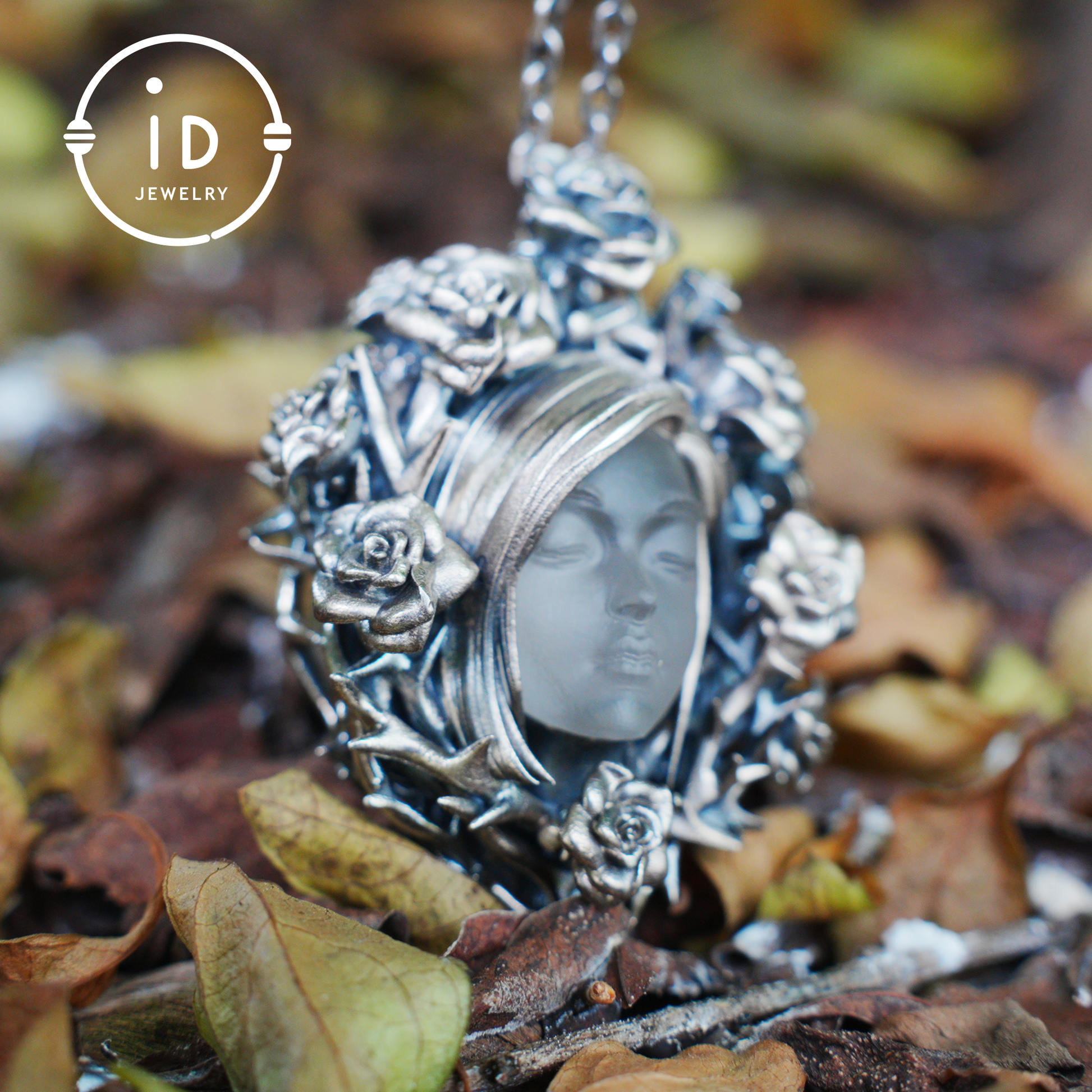 Hand-Carved Rose Wreath Pendant Gift | 925 Sterling Silver Cameo Necklace | Rose Crown & Thorn Frame | Victorian Vintage Style | Handmade