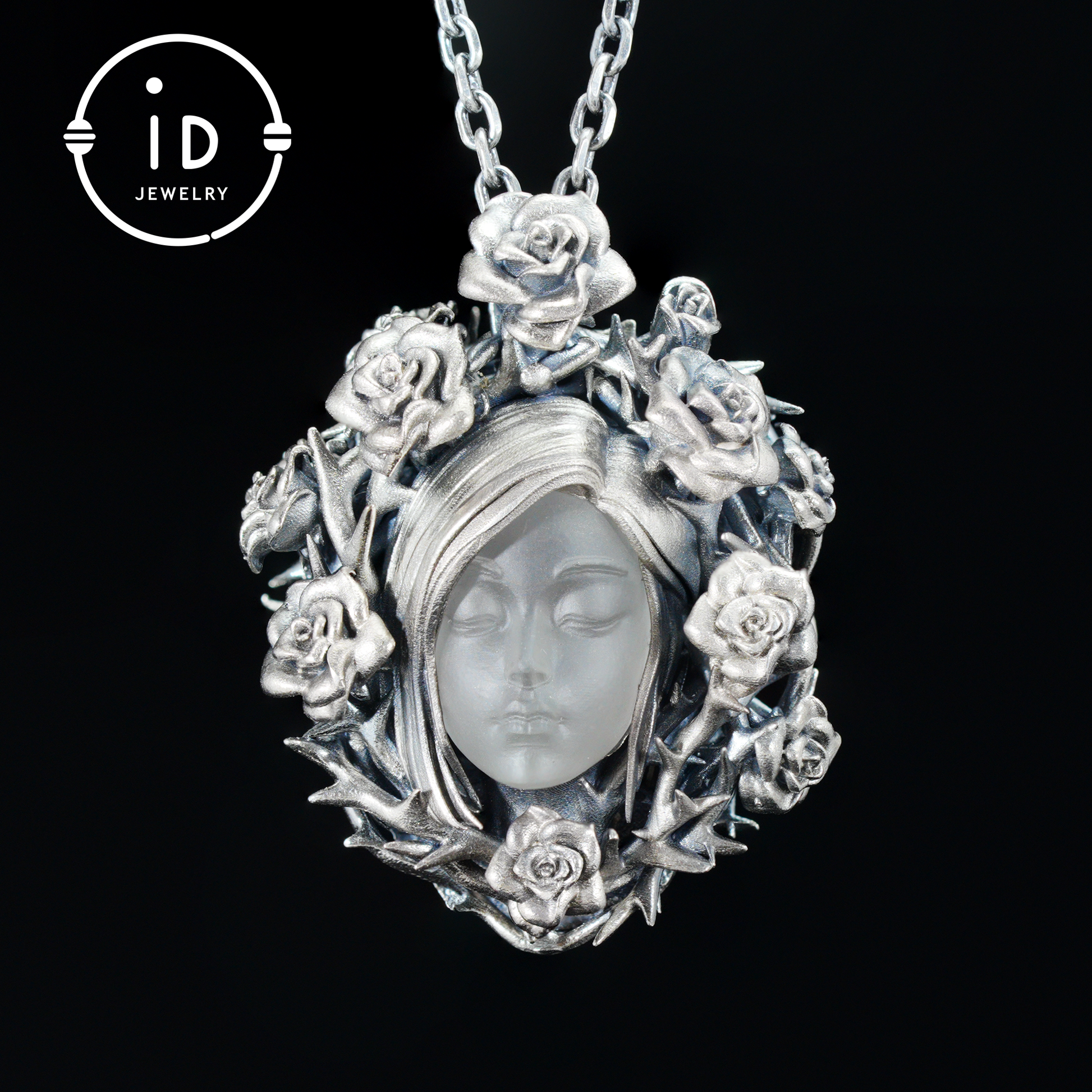 🌹Name: Rose Slumber · White Crystal Girl Relief Pendant