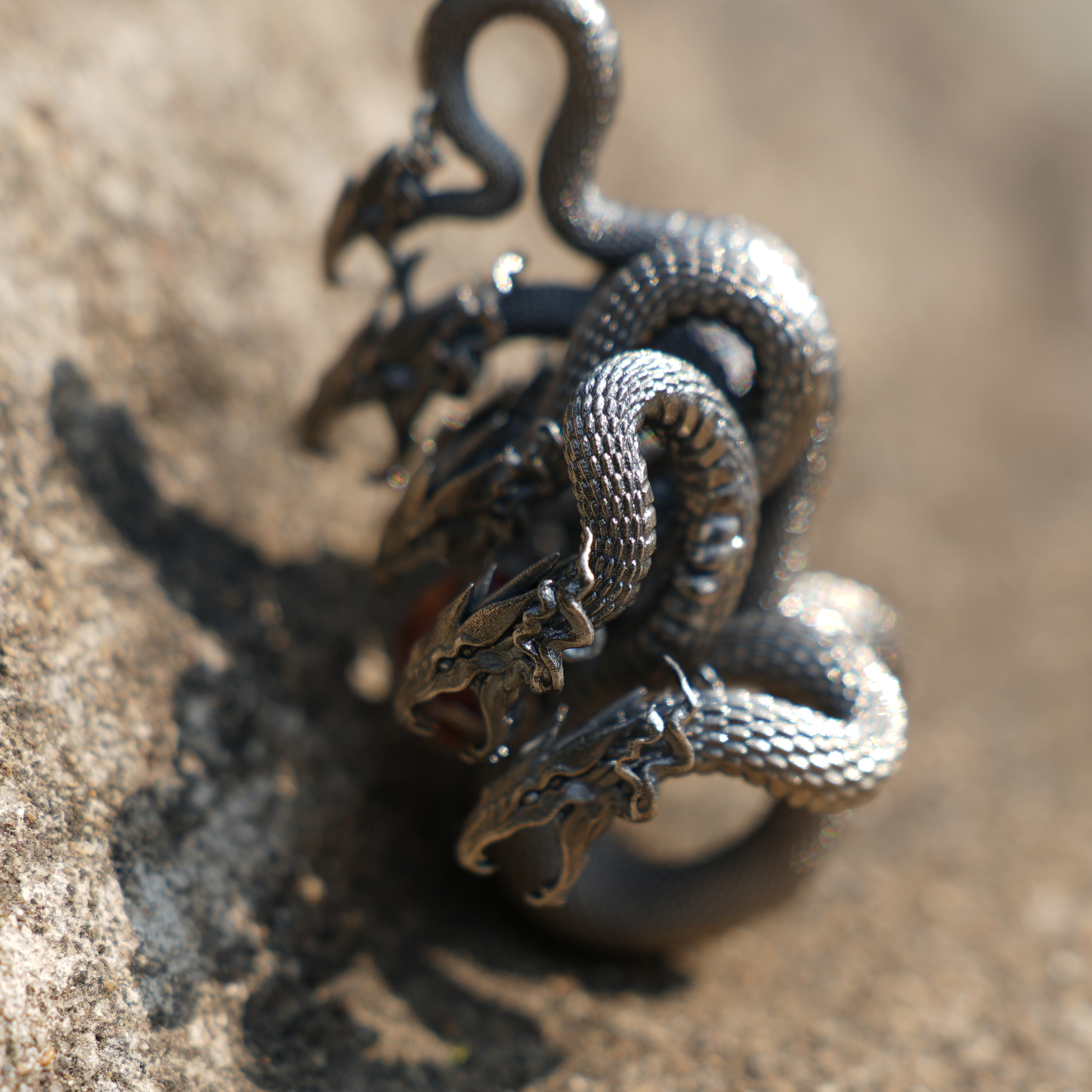 This striking Eight-Headed Serpent Pendant is a true masterpiece, intricately crafted to bring the legendary Yamata no Orochi (Eight-Headed Serpent) from Japanese mythology to life. In Japanese mythology, Yamata no Orochi is a fearsome serpent defeated by the great warrior Susanoo, symbolizing strength, power, and resilience.