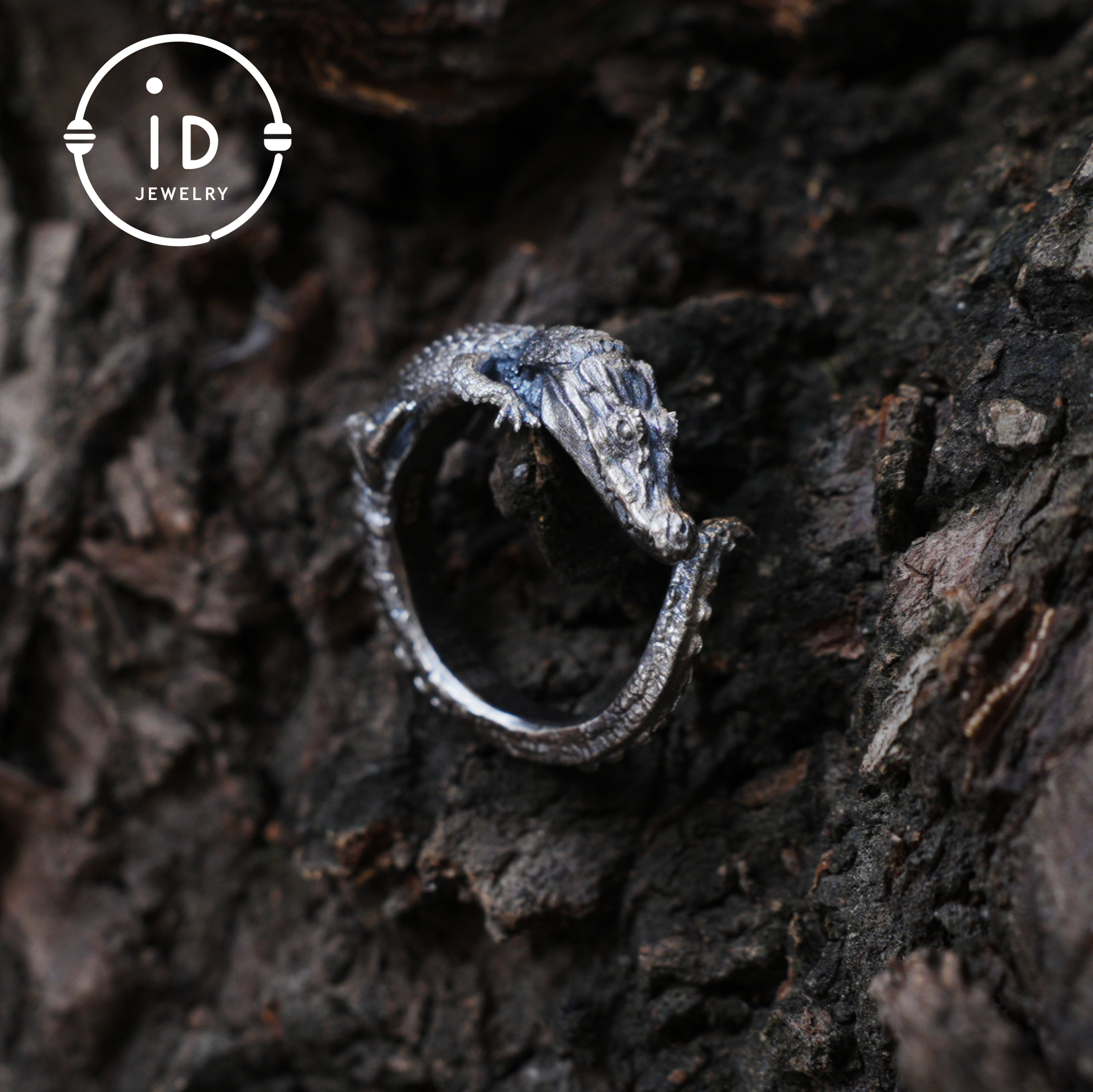 Handmade crocodile totem ring in oxidized 925 sterling silver, gothic style with animal design, gift for friends, partner or yourself