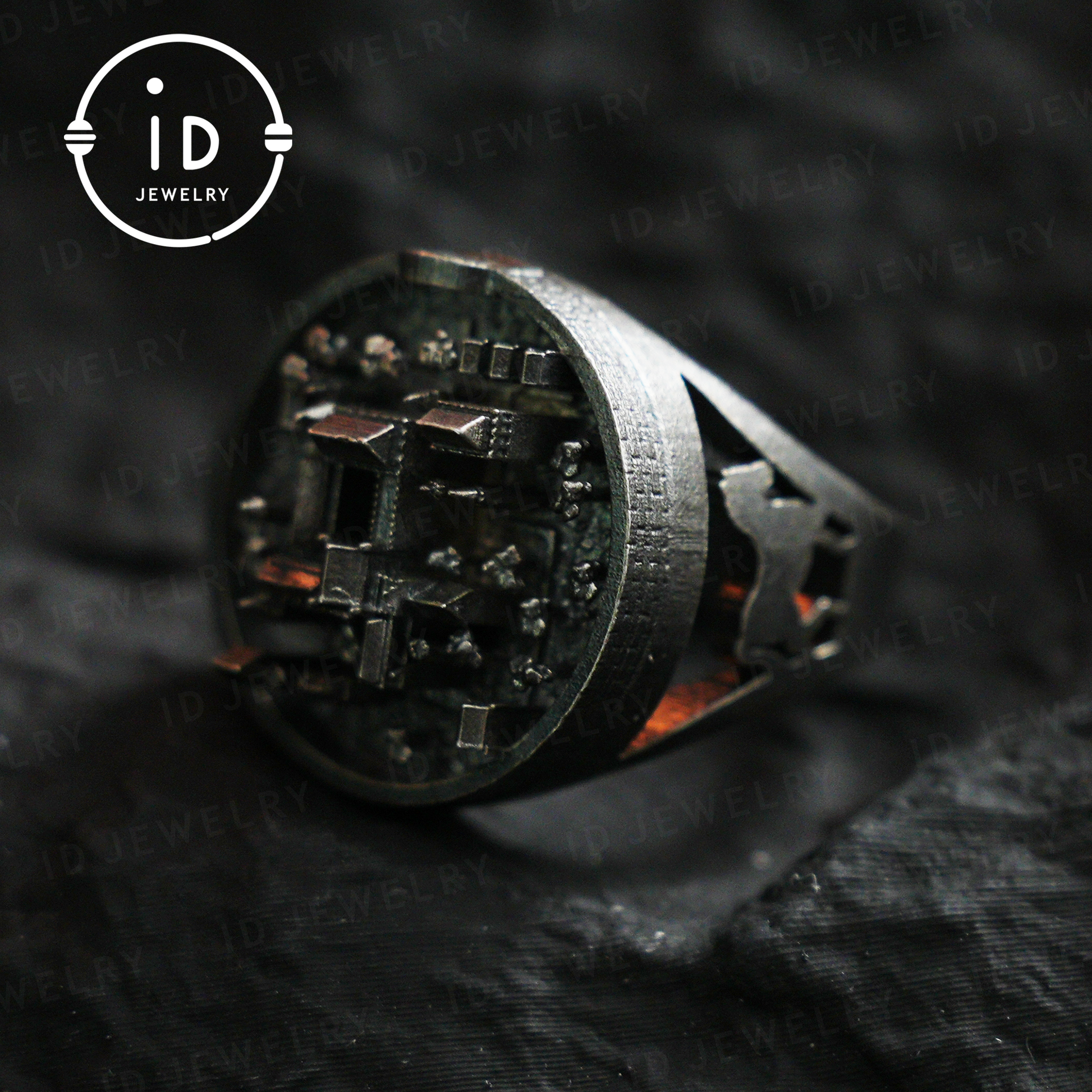 Crafted from high-quality 925 silver, this ring features an intricate microchip-inspired design, symbolizing the modern cyberpunk culture. The fine structures on the surface resemble circuit boards and digital worlds, making it perfect for tech and gaming fans.