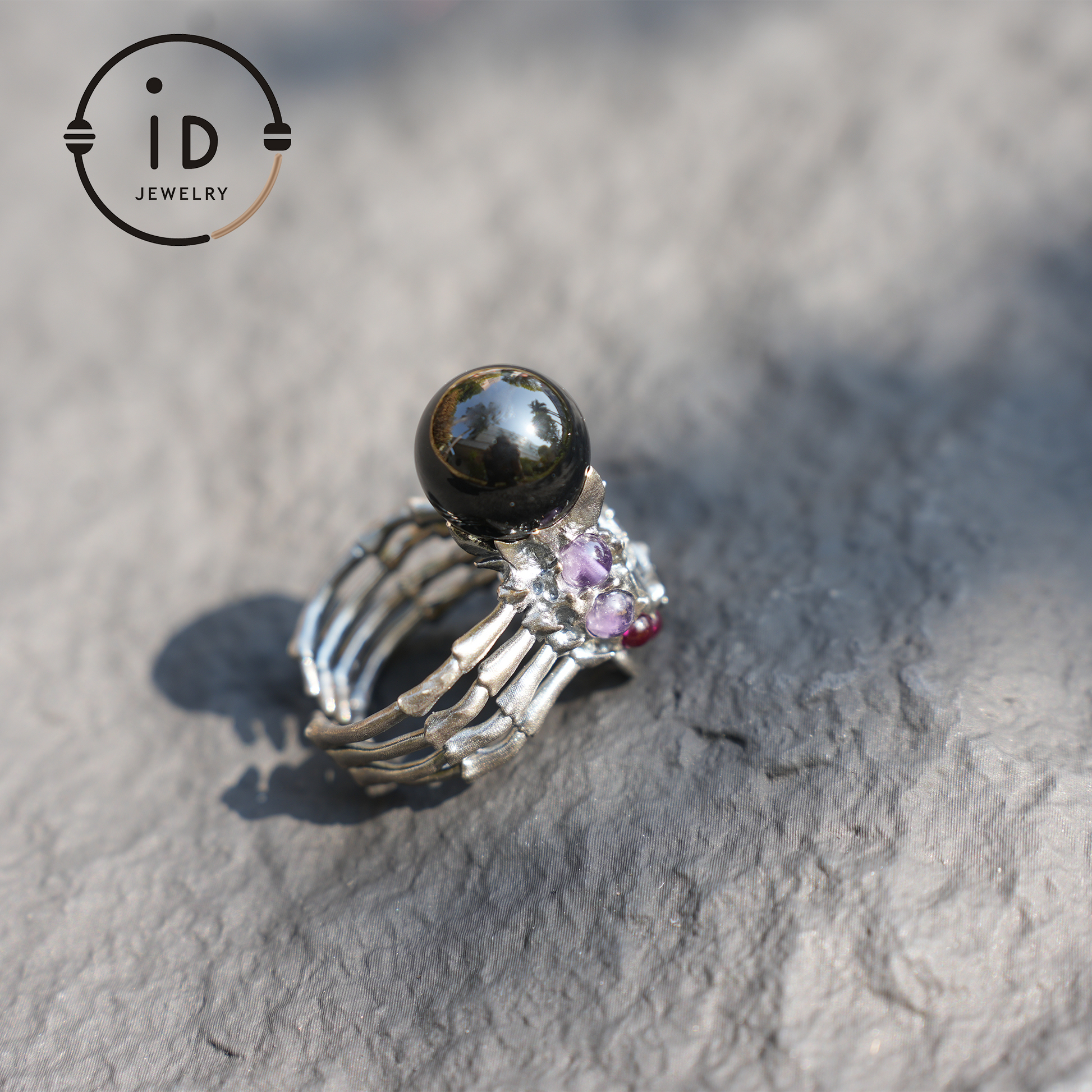 Handcrafted from premium 925 silver, featuring an intricately set Agate gemstone. The detailed metalwork gives it a dark, elegant charm, making it a perfect talisman or protection ring.