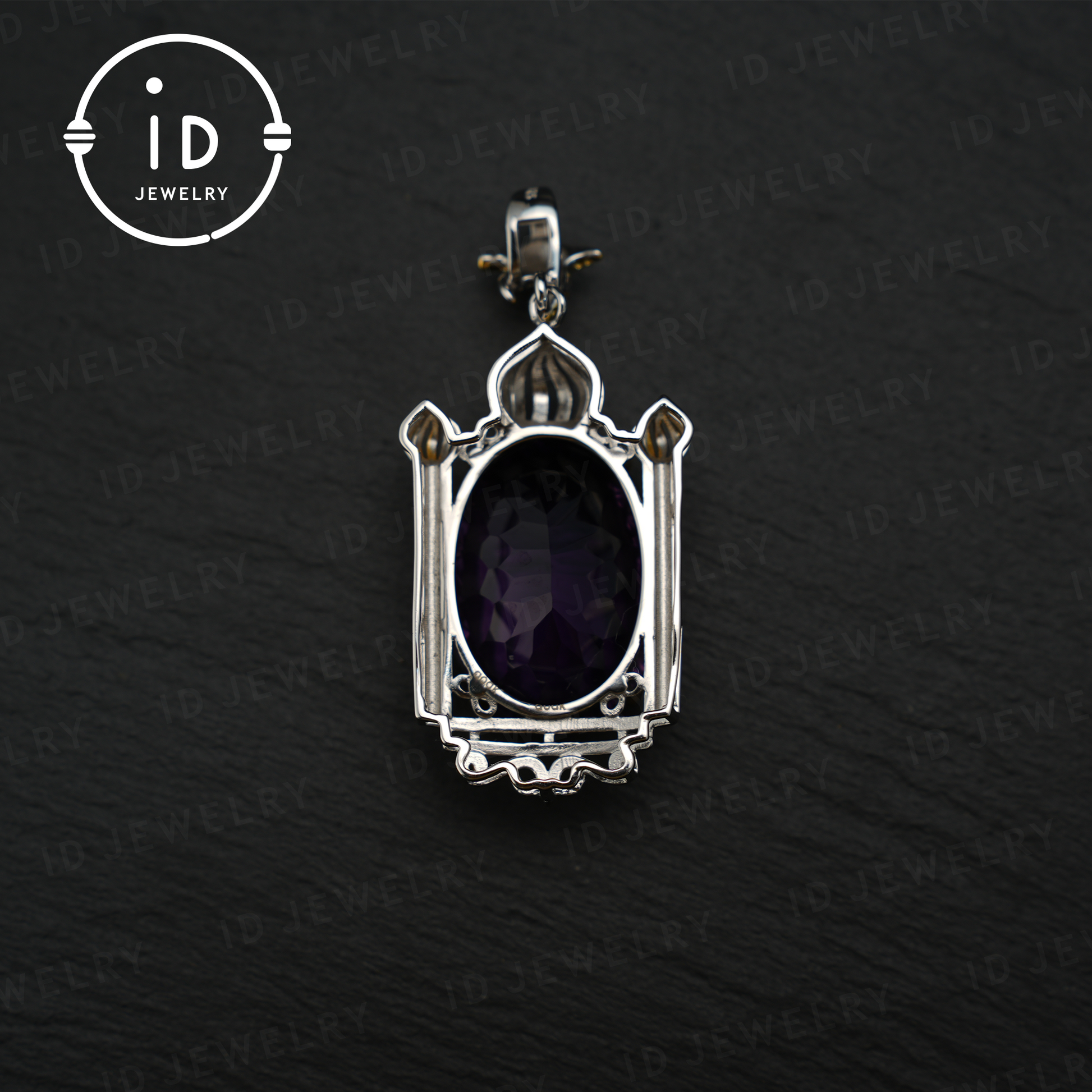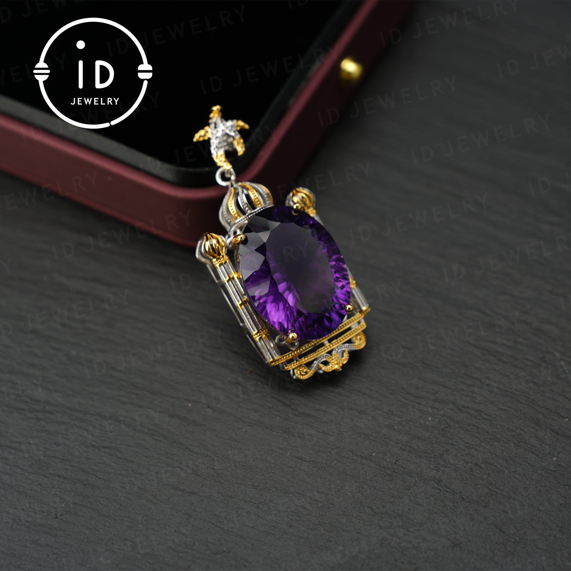 💎 Unique Baroque Style Amethyst Pendant – This captivating pendant blends luxurious craftsmanship with intricate design. Featuring a large, faceted amethyst as its centerpiece, crowned with a golden ornamental top, the piece exudes royal elegance. ✨👑