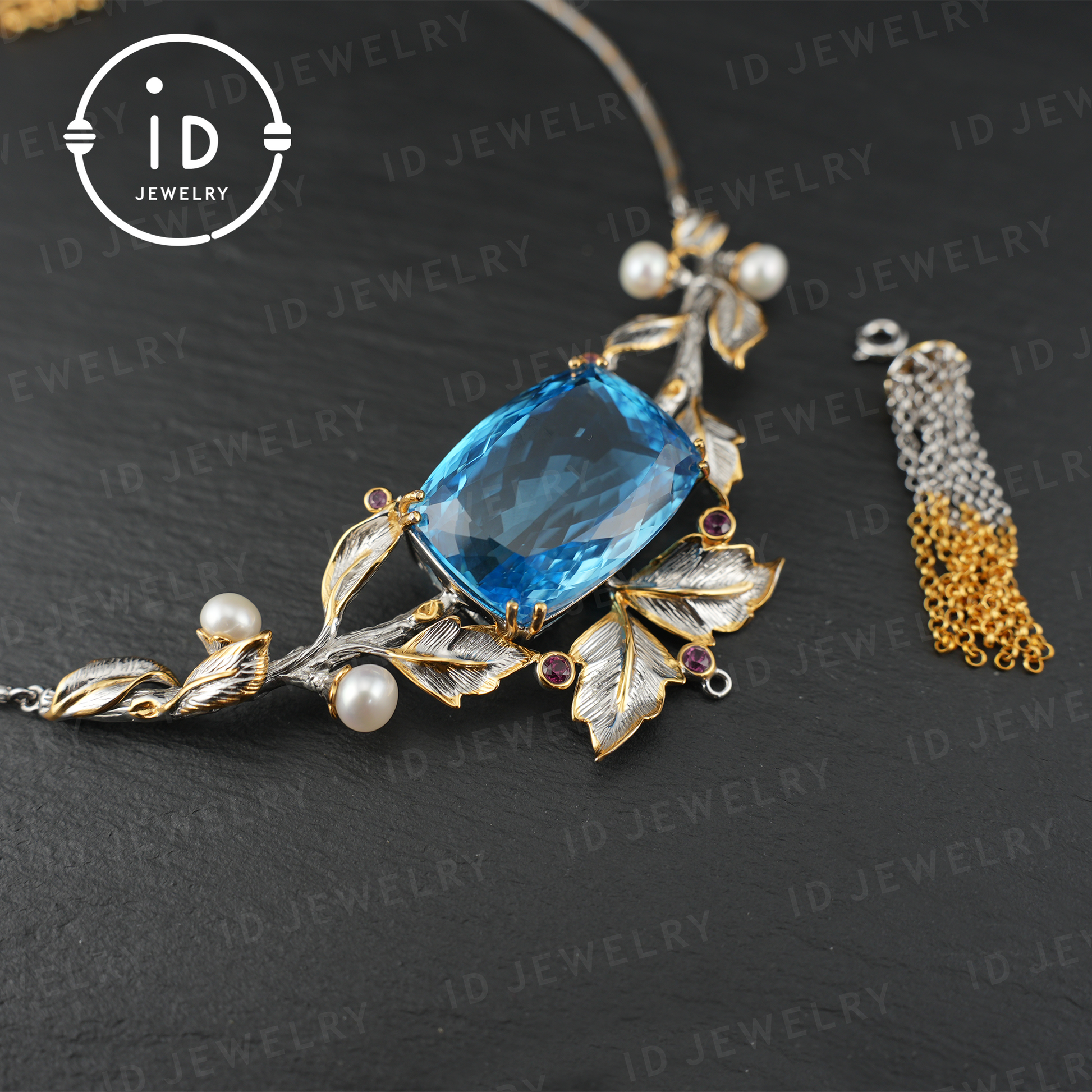 - Gemstone: High-quality natural blue topaz with a dazzling cut