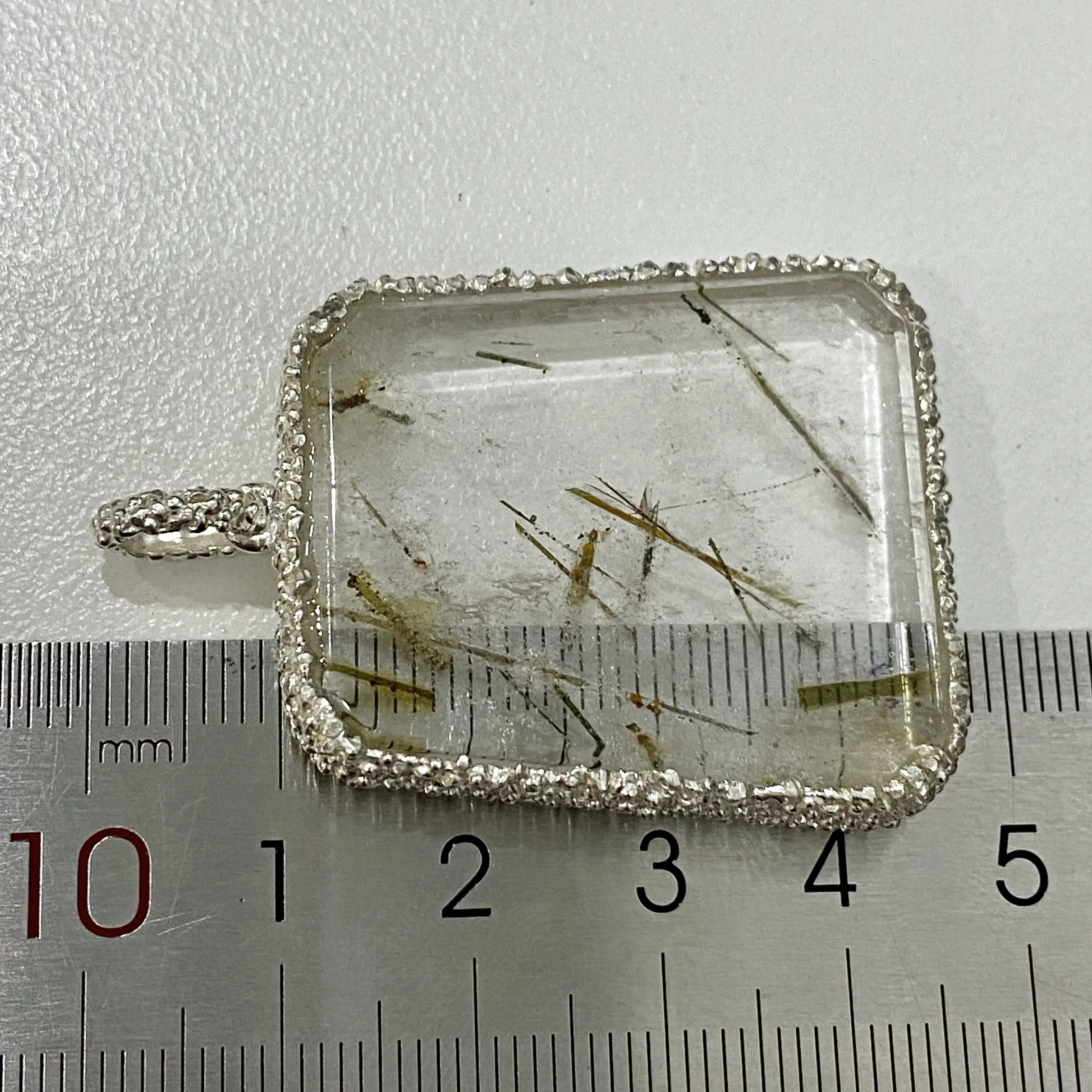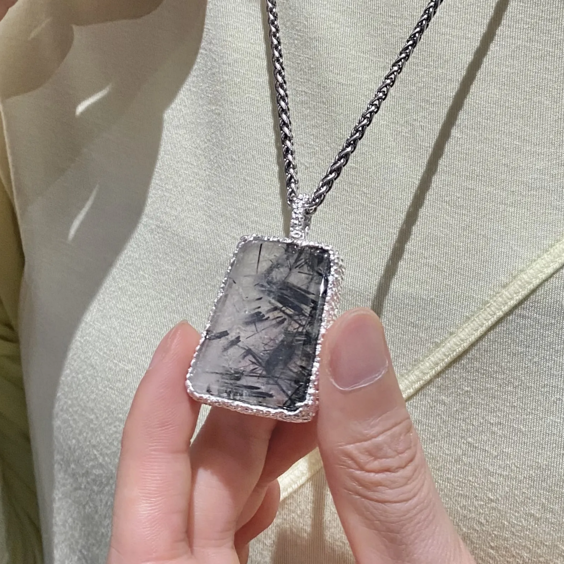 Natural Rutile Quartz Pendant | 925 Silver Tourmalinated Necklace | Raw Crystal Healing Jewelry Gift for Her or Him