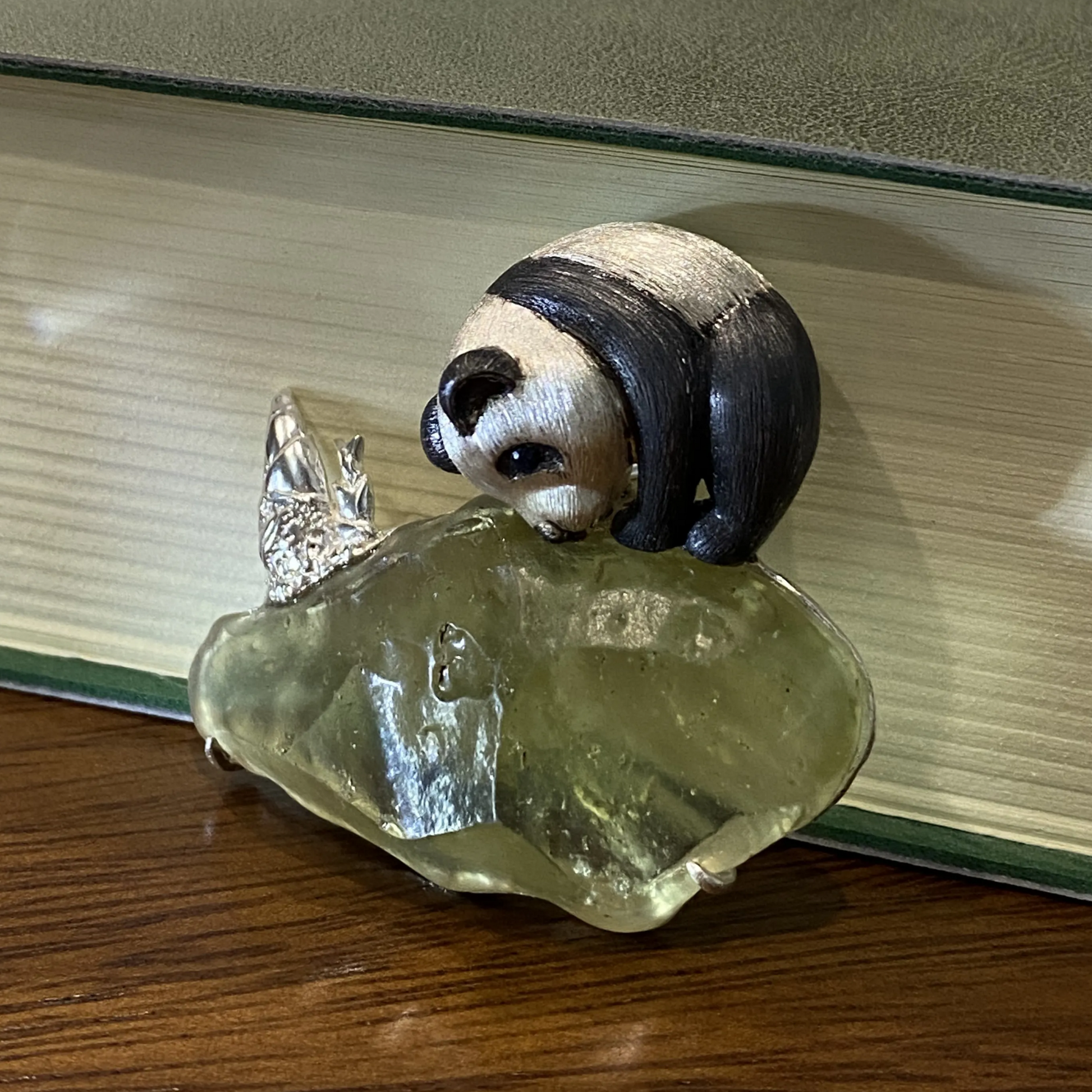 Handcrafted panda motif on raw glass base
