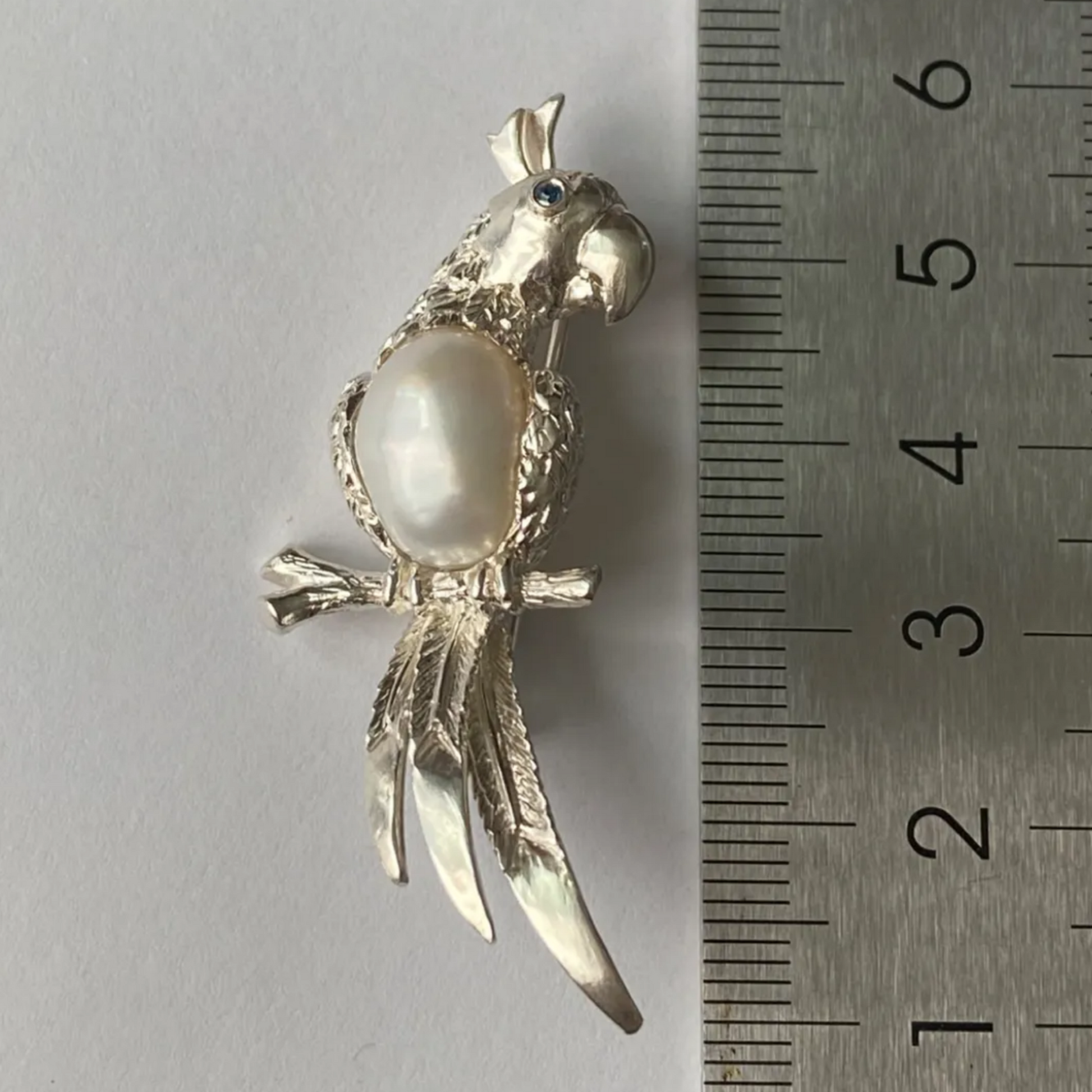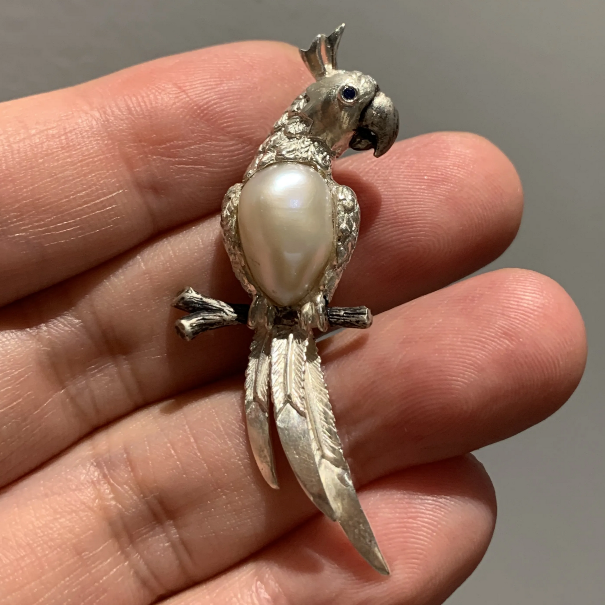 This handcrafted 2-in-1 parrot brooch and pendant is made from 925 sterling silver and set with a natural freshwater pearl.
