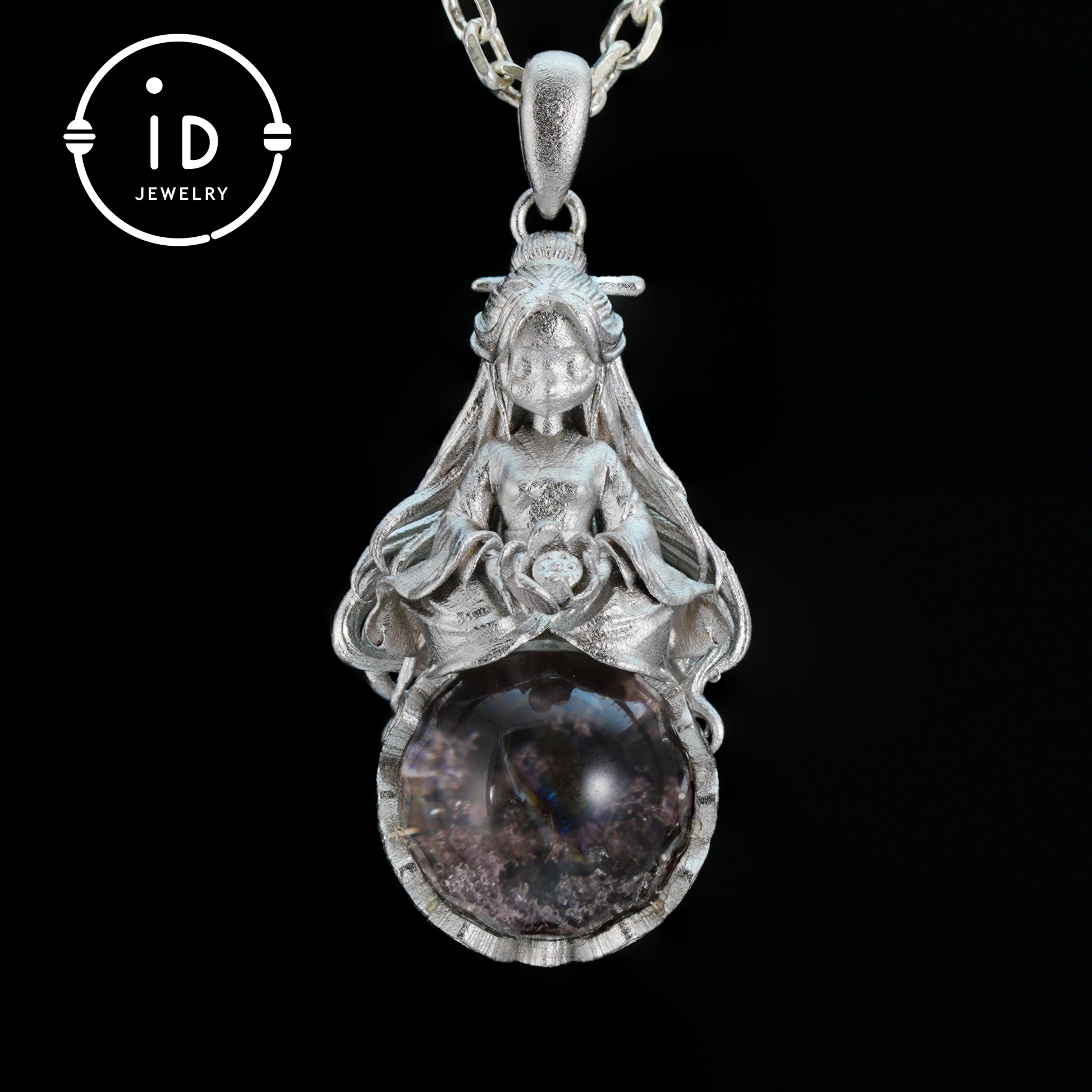 In the quiet moments of everyday life, this silver pendant unfolds its gentle symbolic strength: the delicate figure above the phantom quartz combines fine craftsmanship with a sense of inner composure and becomes a necklace that not only adorns but also accompanies as a talisman offering a form of inner healing. The combination of 925 silver, mini sculpture and natural crystal creates a piece of jewelry that appeals to those who find meaning in clear shapes and guidance in quiet moments.