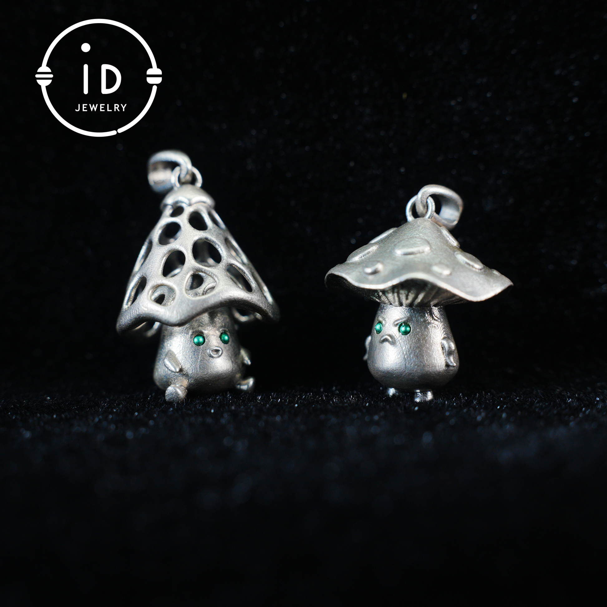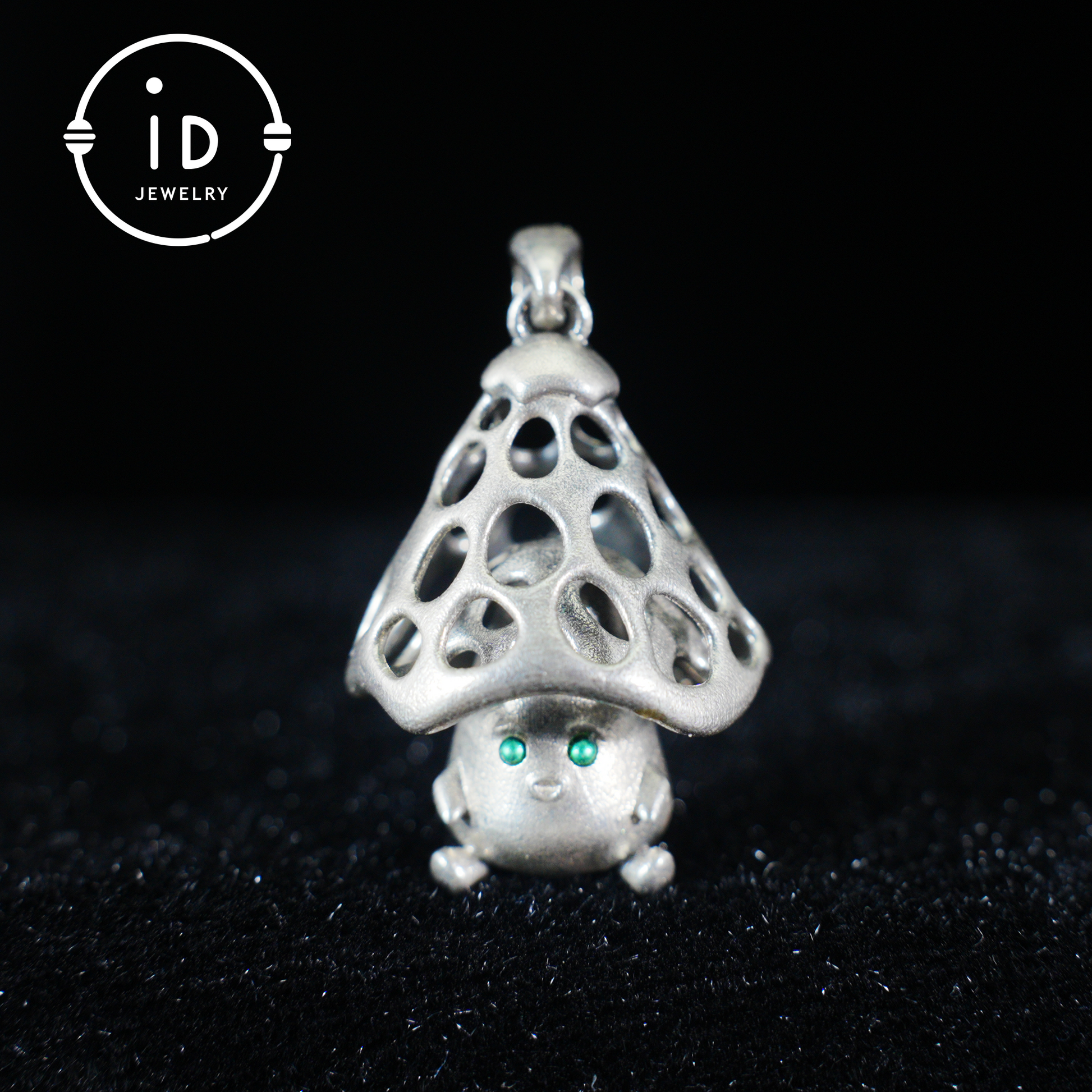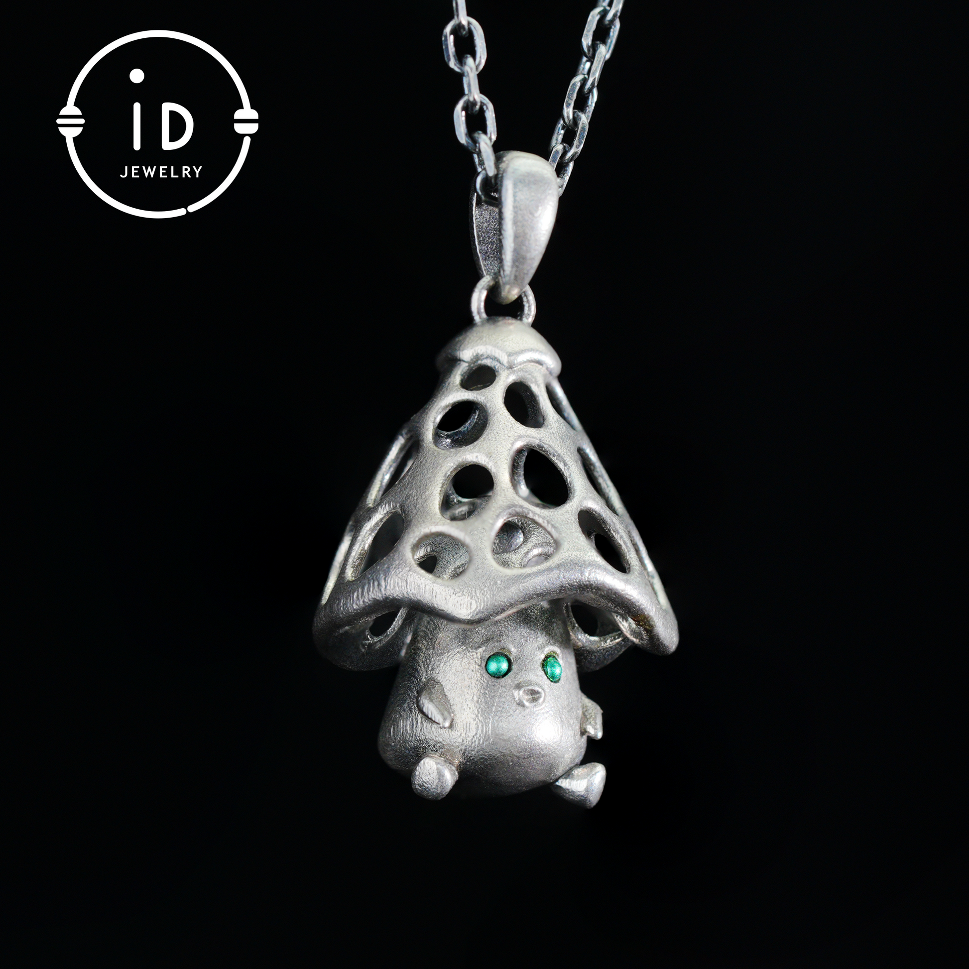 Sterling Silver Mushroom Spirit Pendant – Forest Guardian Necklace with Green Zircon Eyes – Fairycore Jewelry Gift for Sensitive Souls