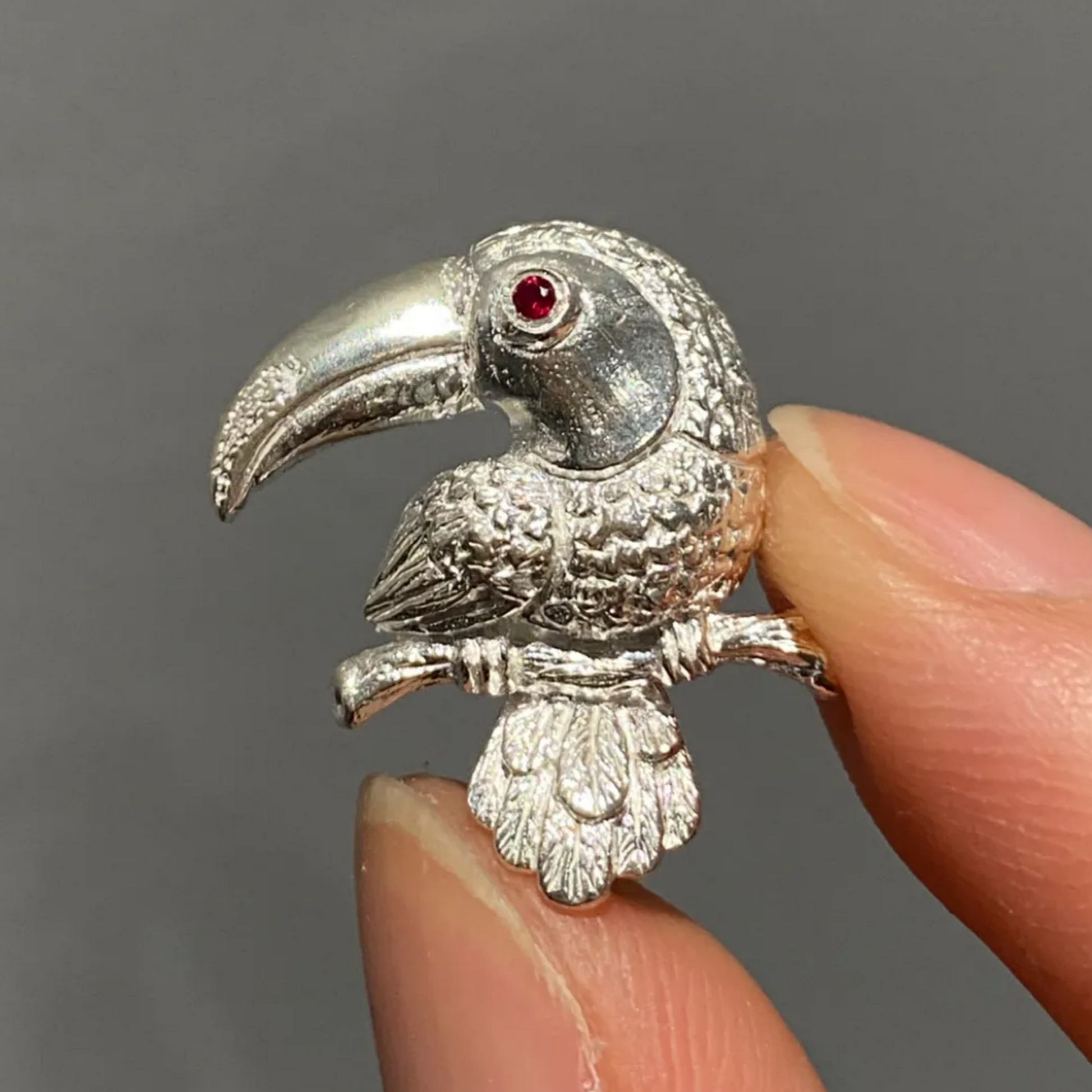 Toucan Brooch Pendant | 925 Silver & Ruby | Handmade Bird Totem Jewelry Gift for Animal Lovers